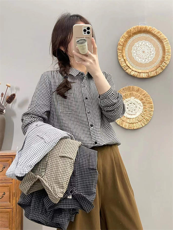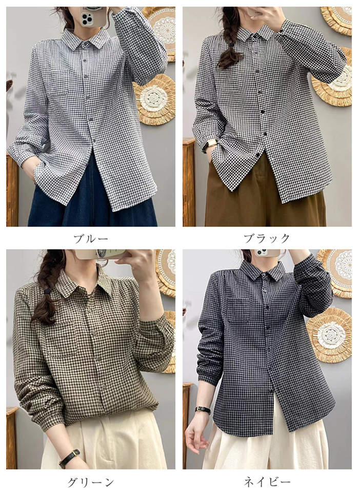 シャツ レディース 長袖 綿 チェック