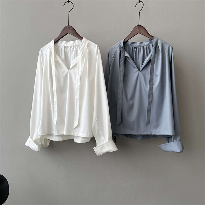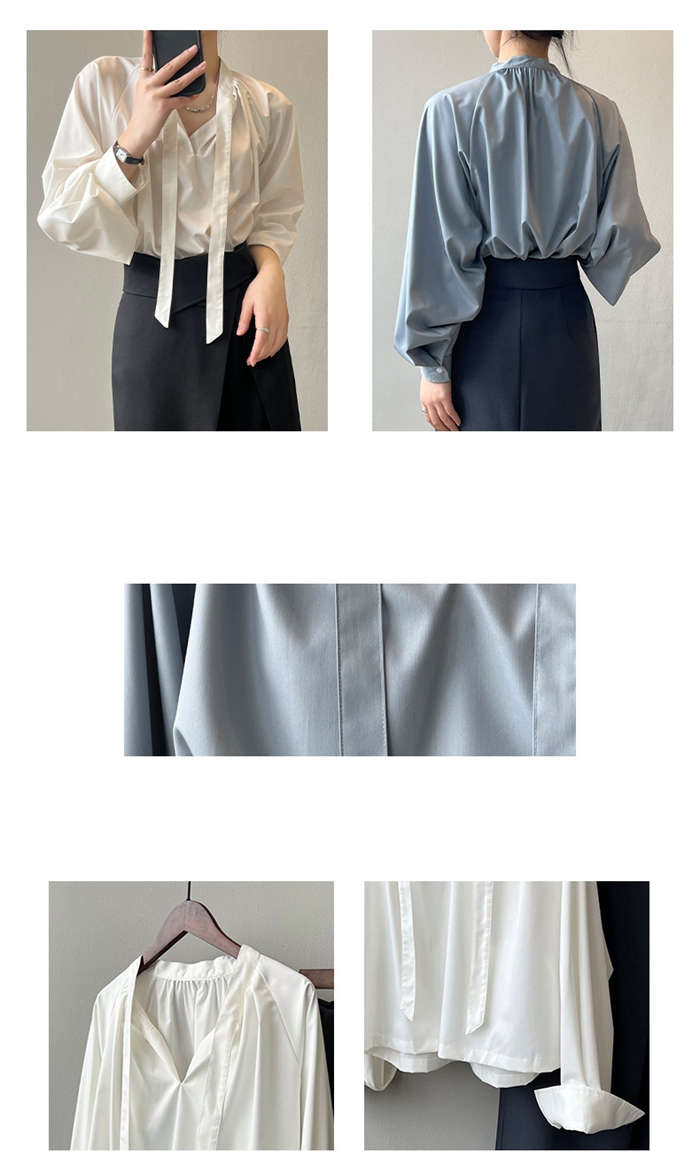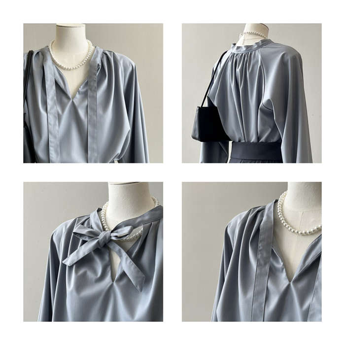 シアースリーブ ドッキングシャツ ボウタイシャツブラウス