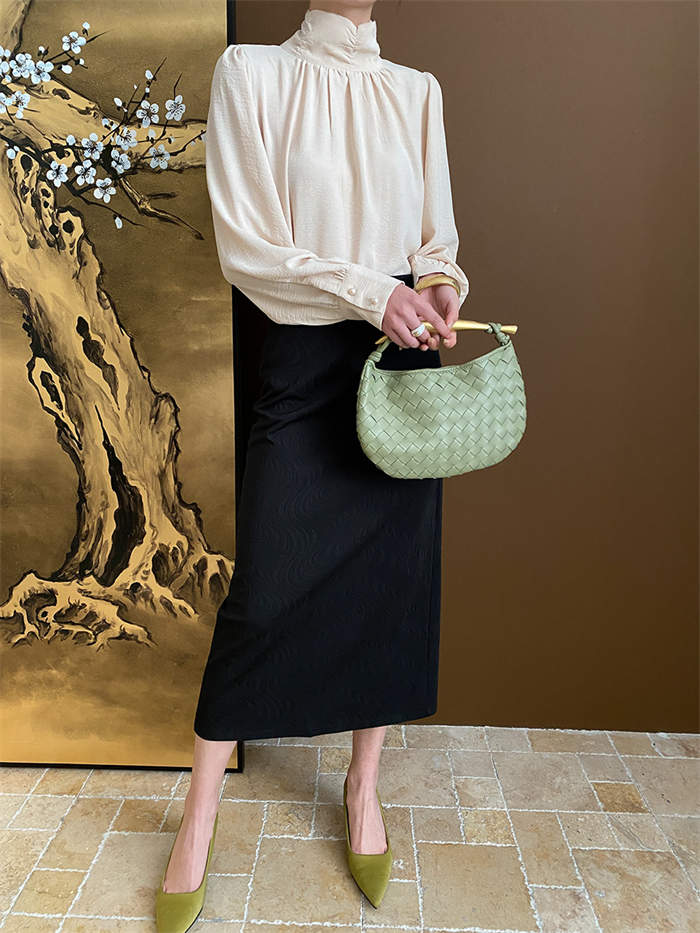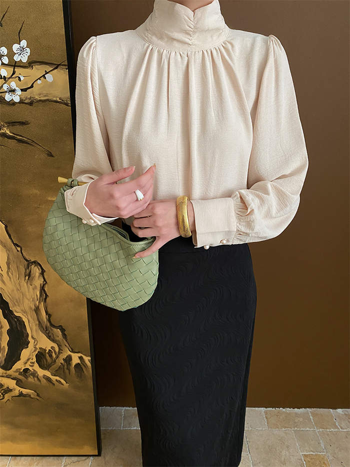 シアースリーブ ドッキングシャツ ボウタイシャツブラウス
