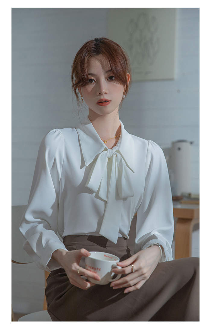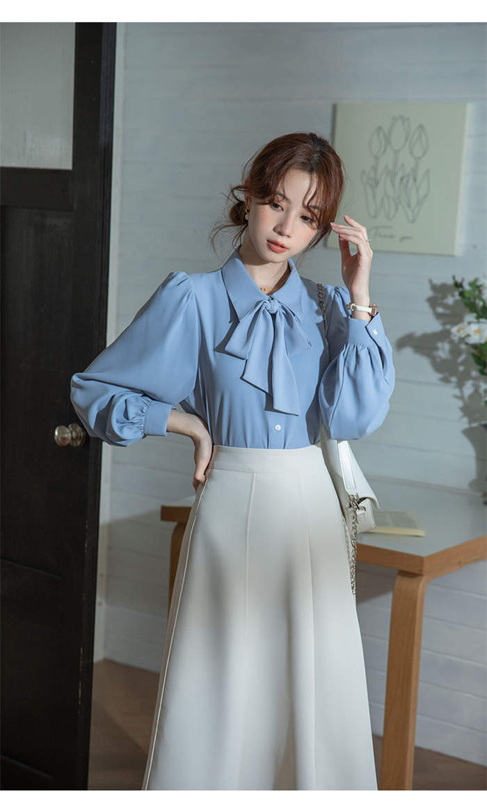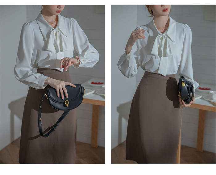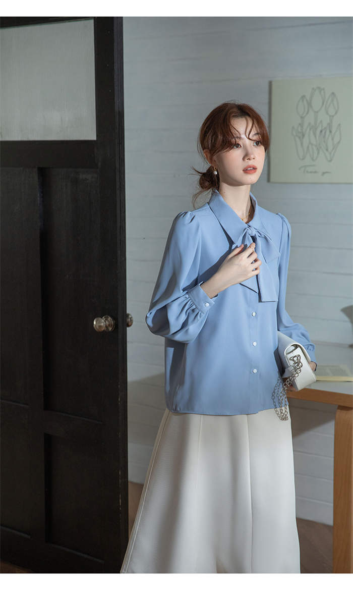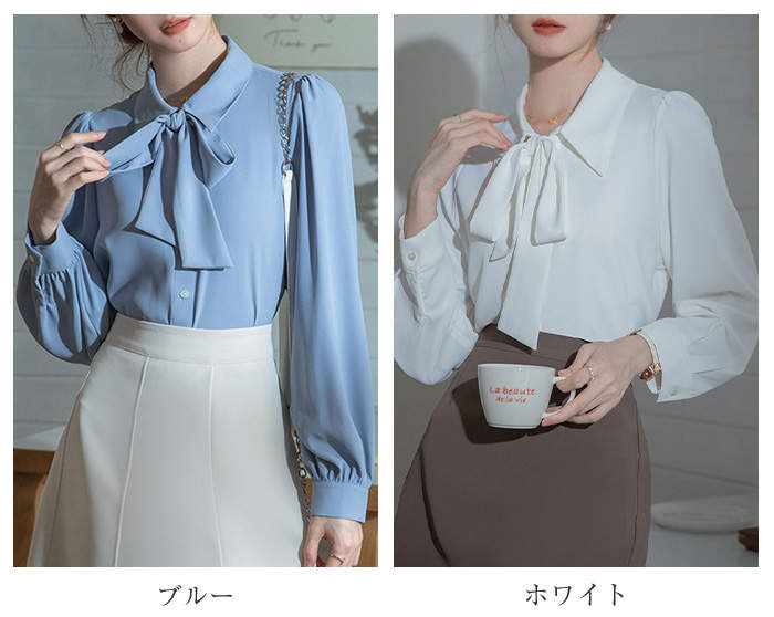 シアースリーブ ドッキングシャツ ボウタイシャツブラウス