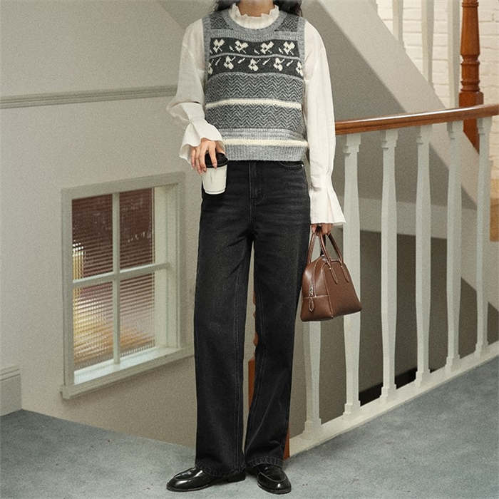 デニムパンツ ビジュー付き