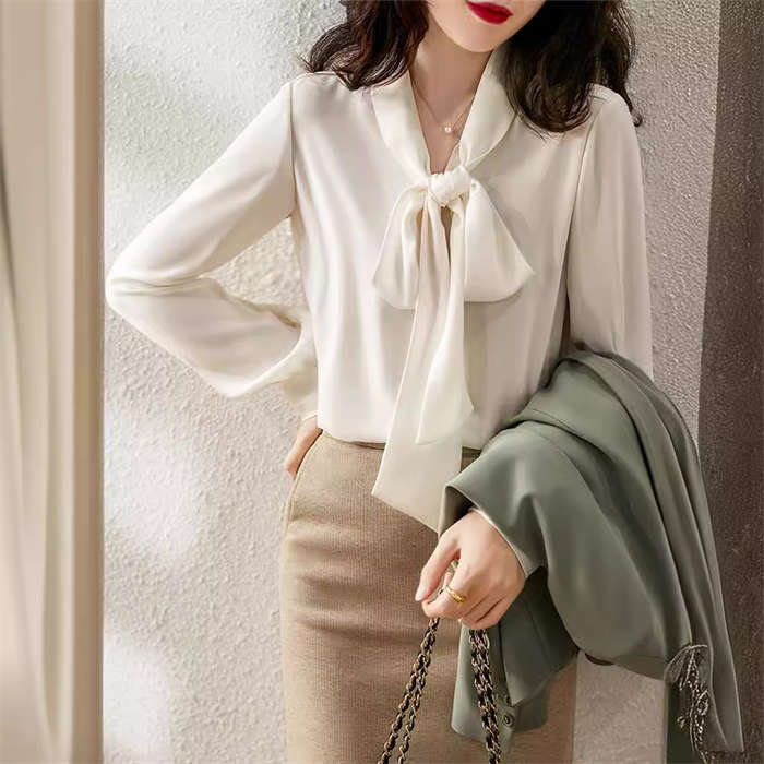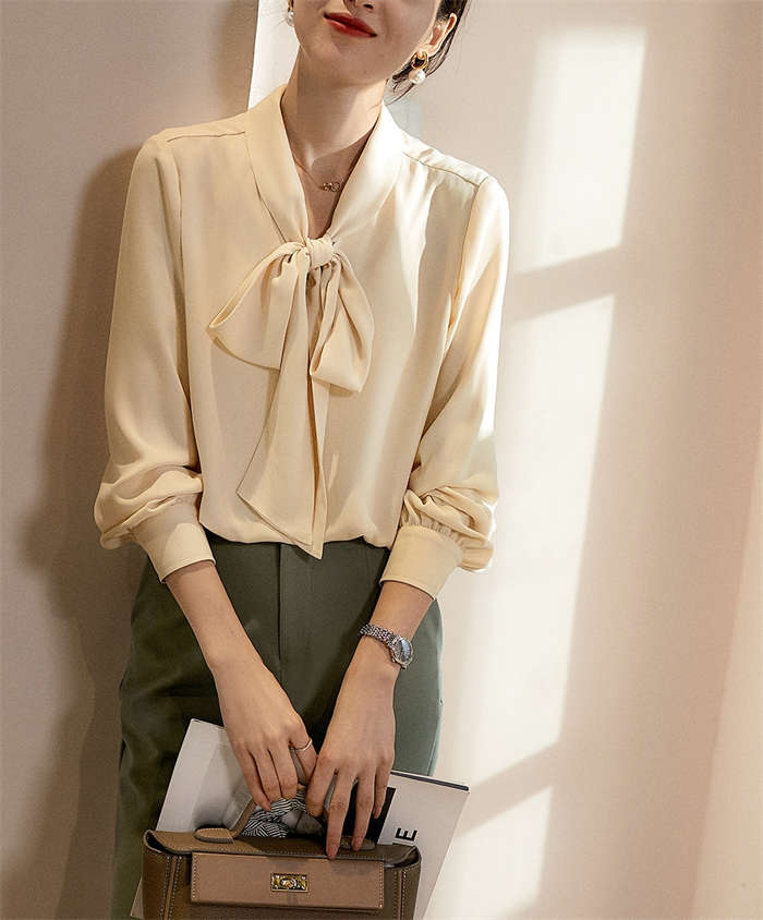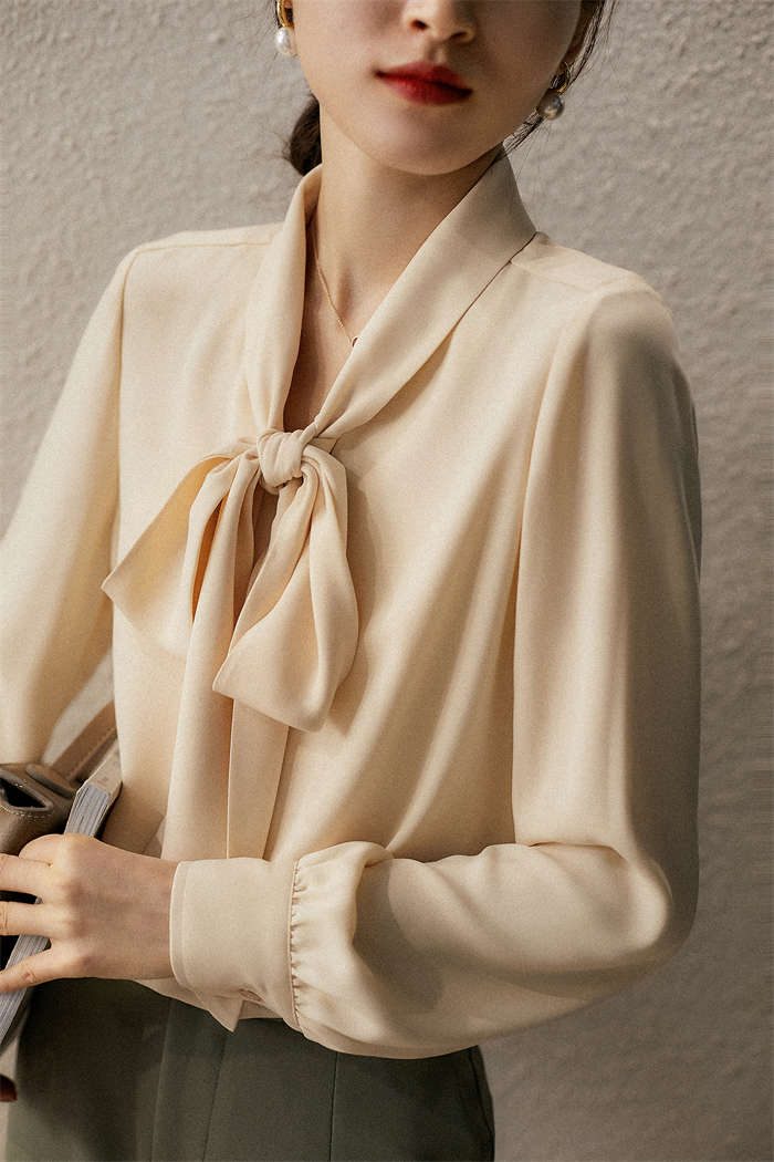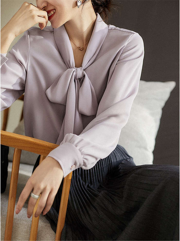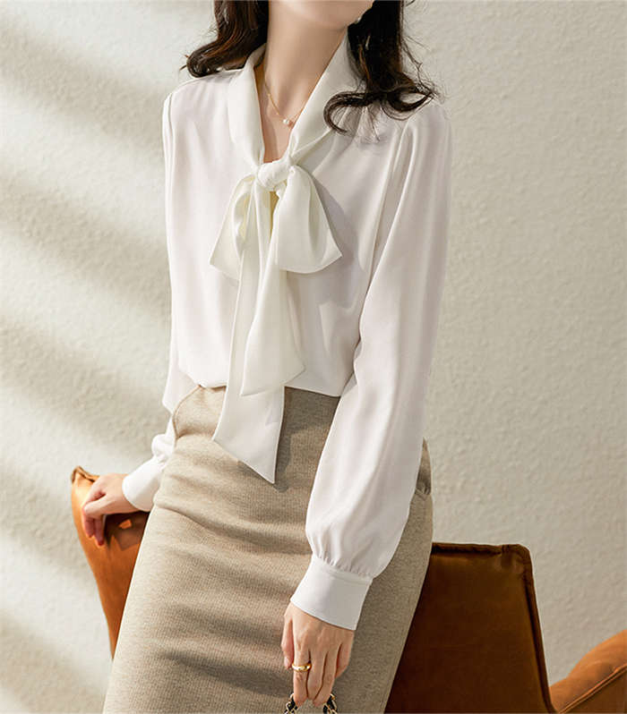 シアースリーブ ドッキングシャツ ボウタイシャツブラウス