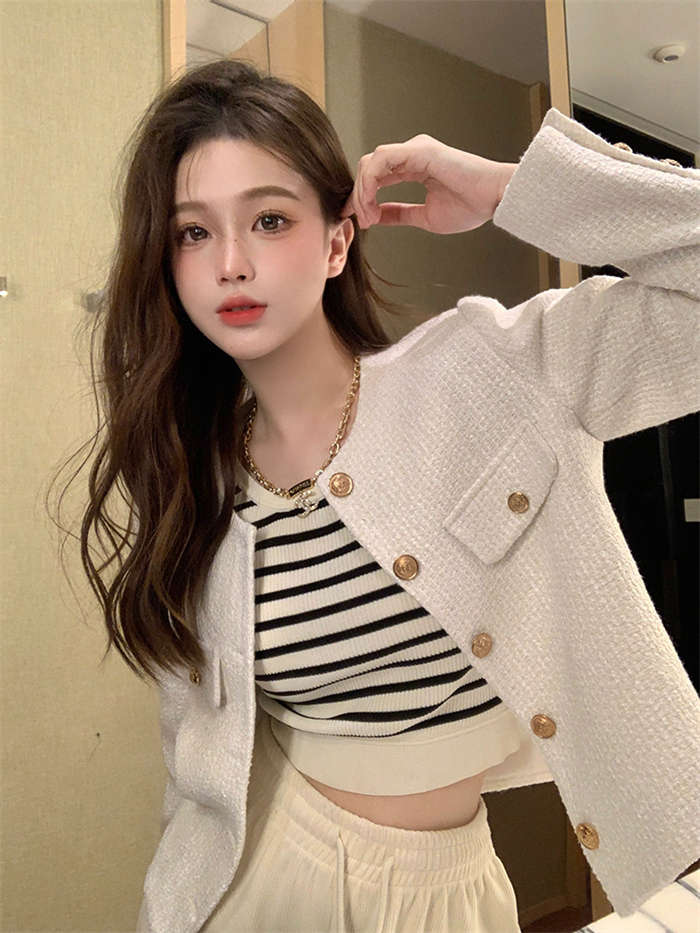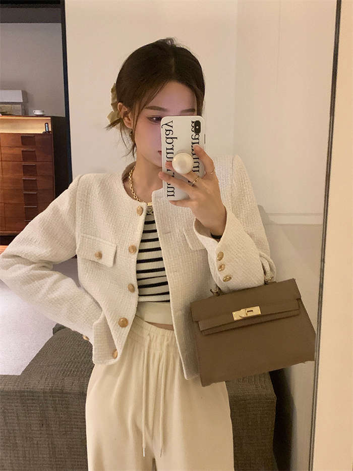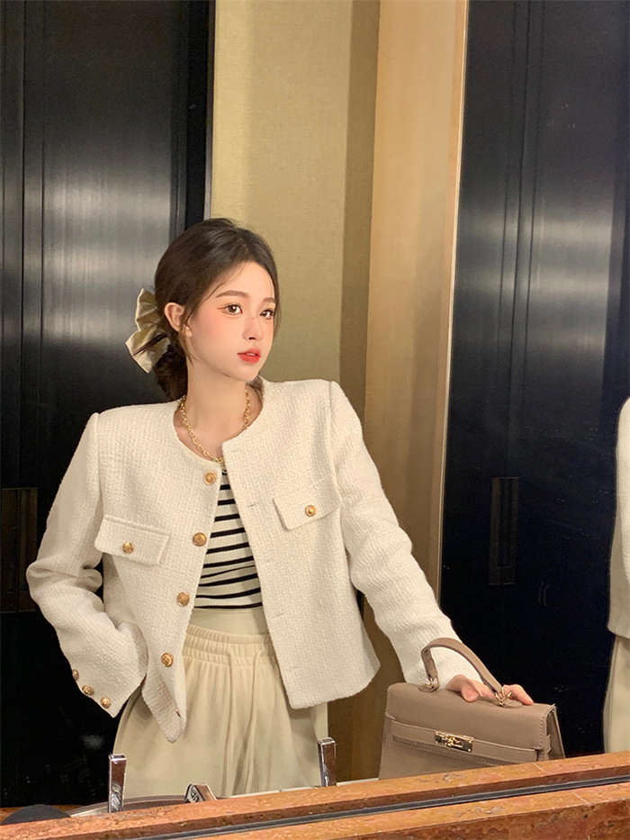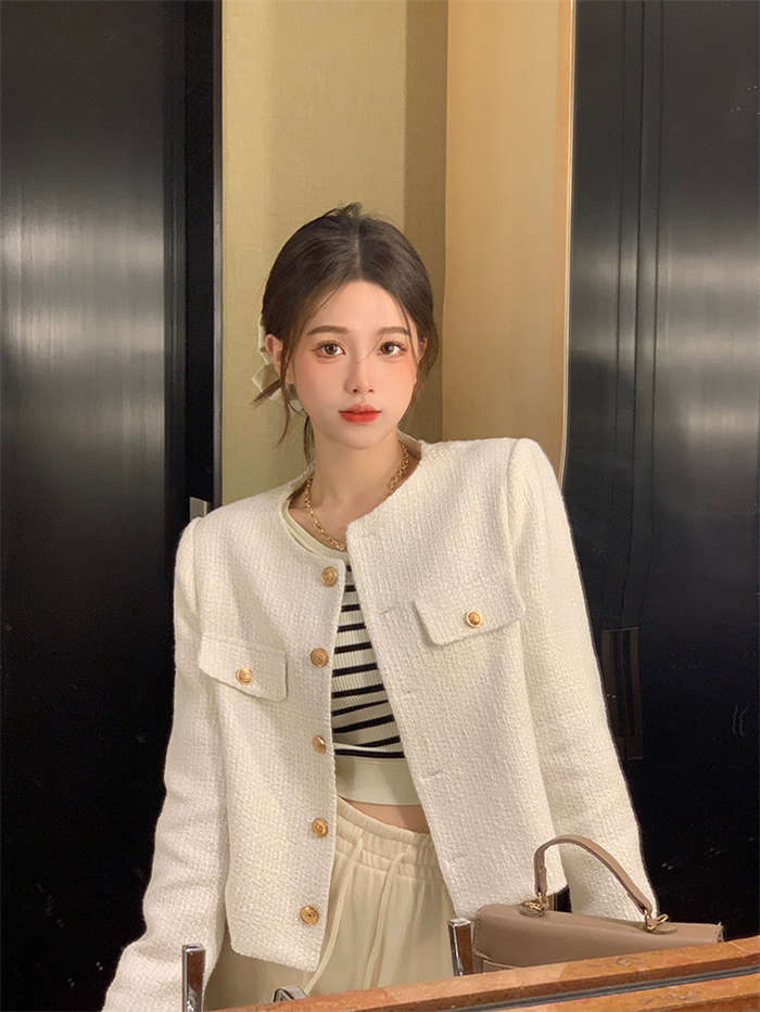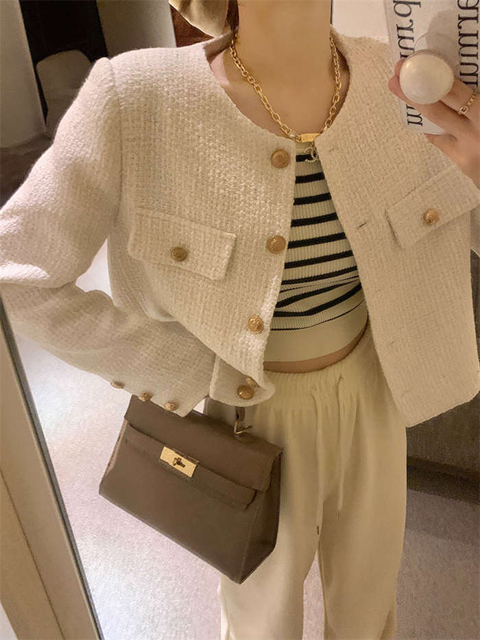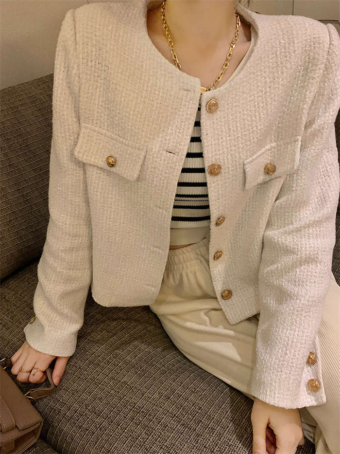 ツイードノーカラージャケット 春 秋