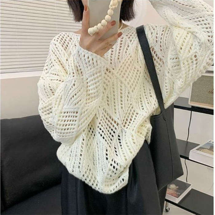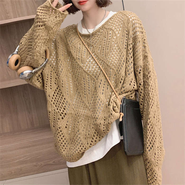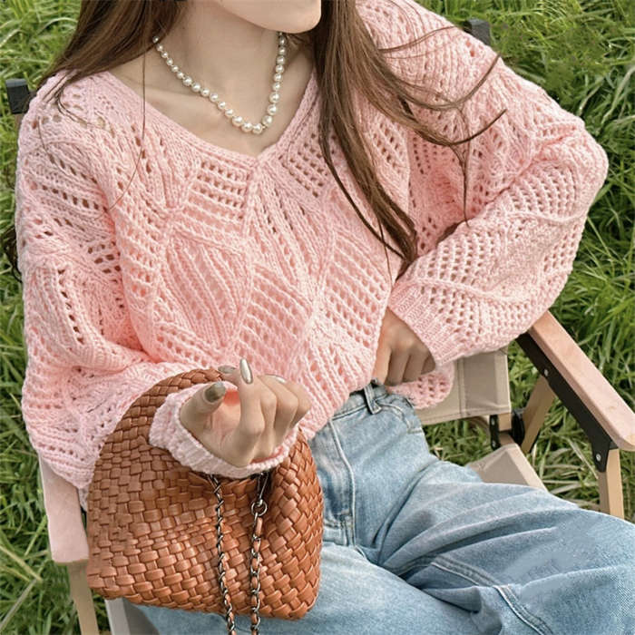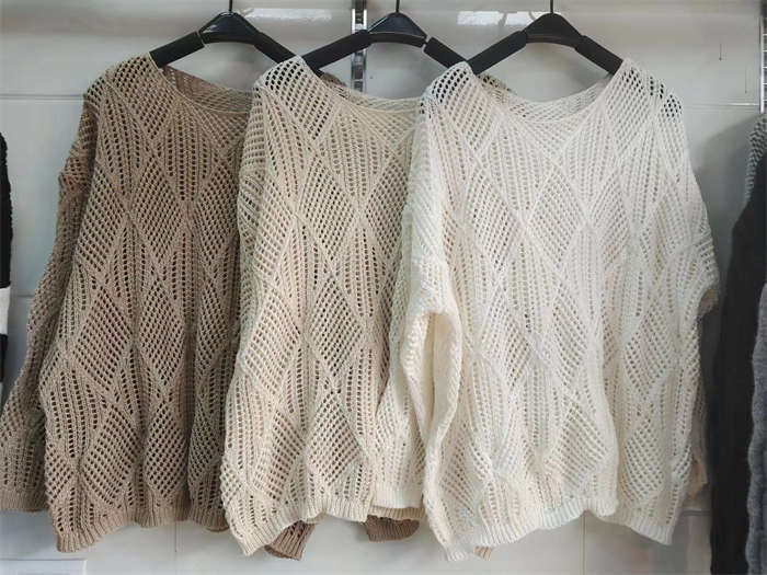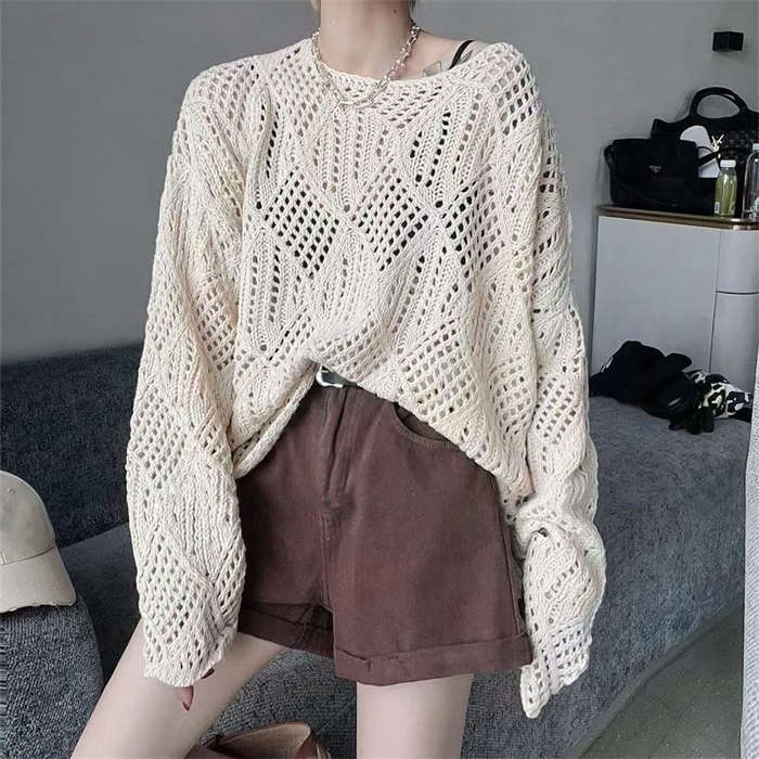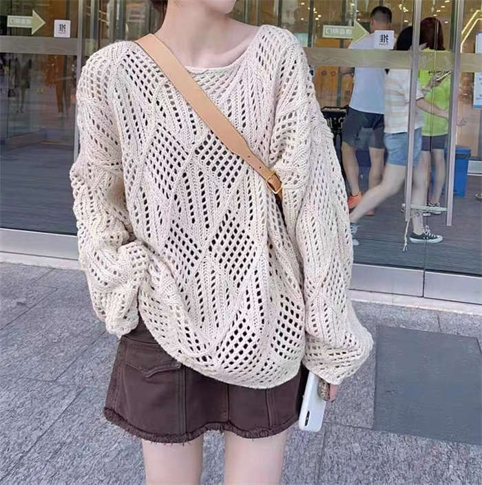 透かし編みの華奢見えするニットプルオー