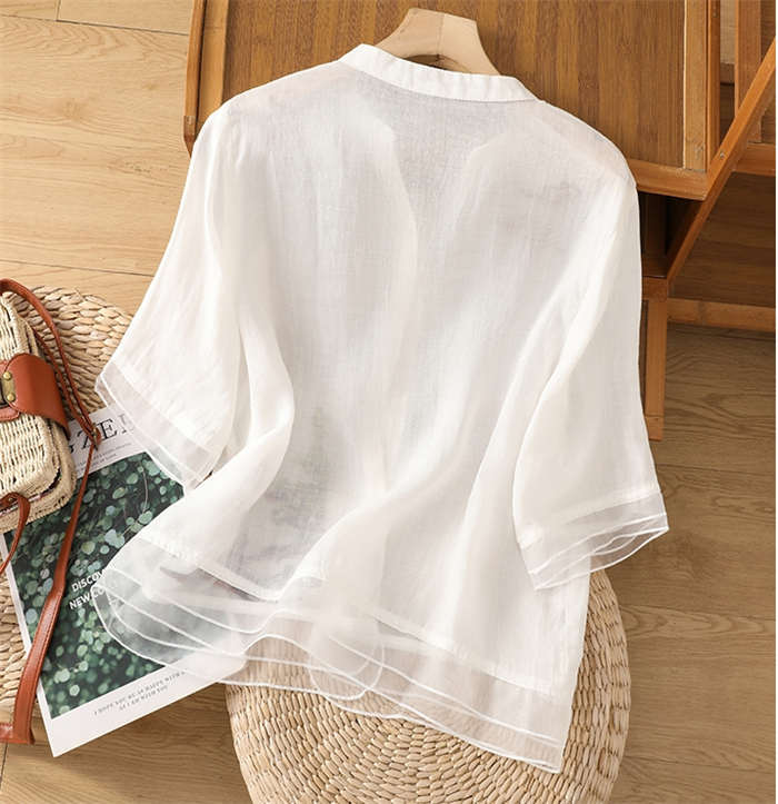 シアースリーブ ドッキングシャツ ボウタイシャツブラウス