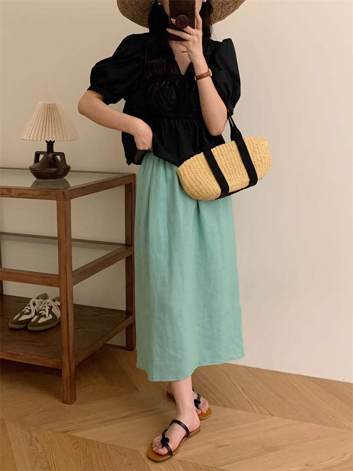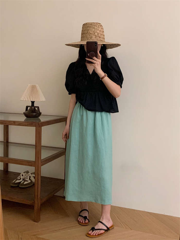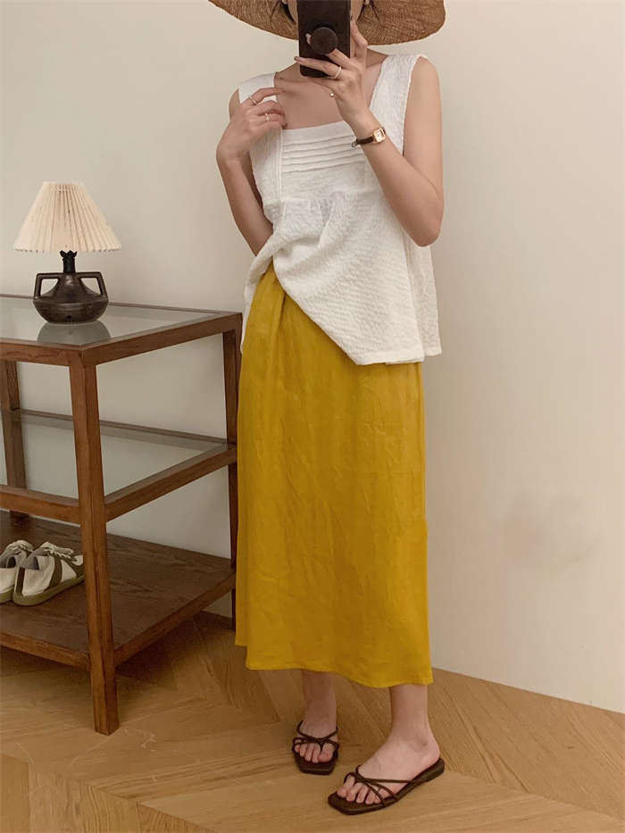 7カラー選べ~ 綿麻素材 ハイウエスト