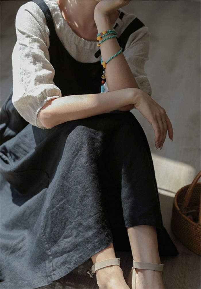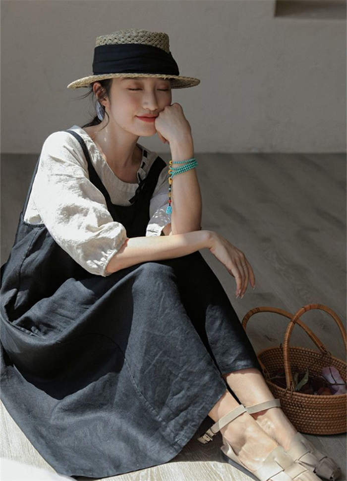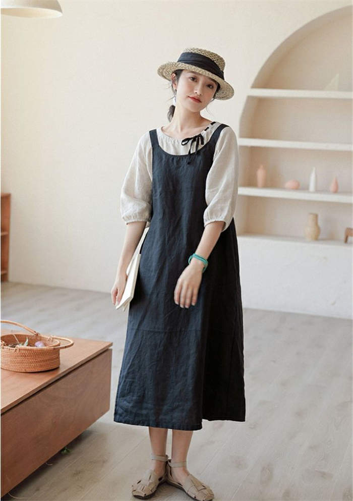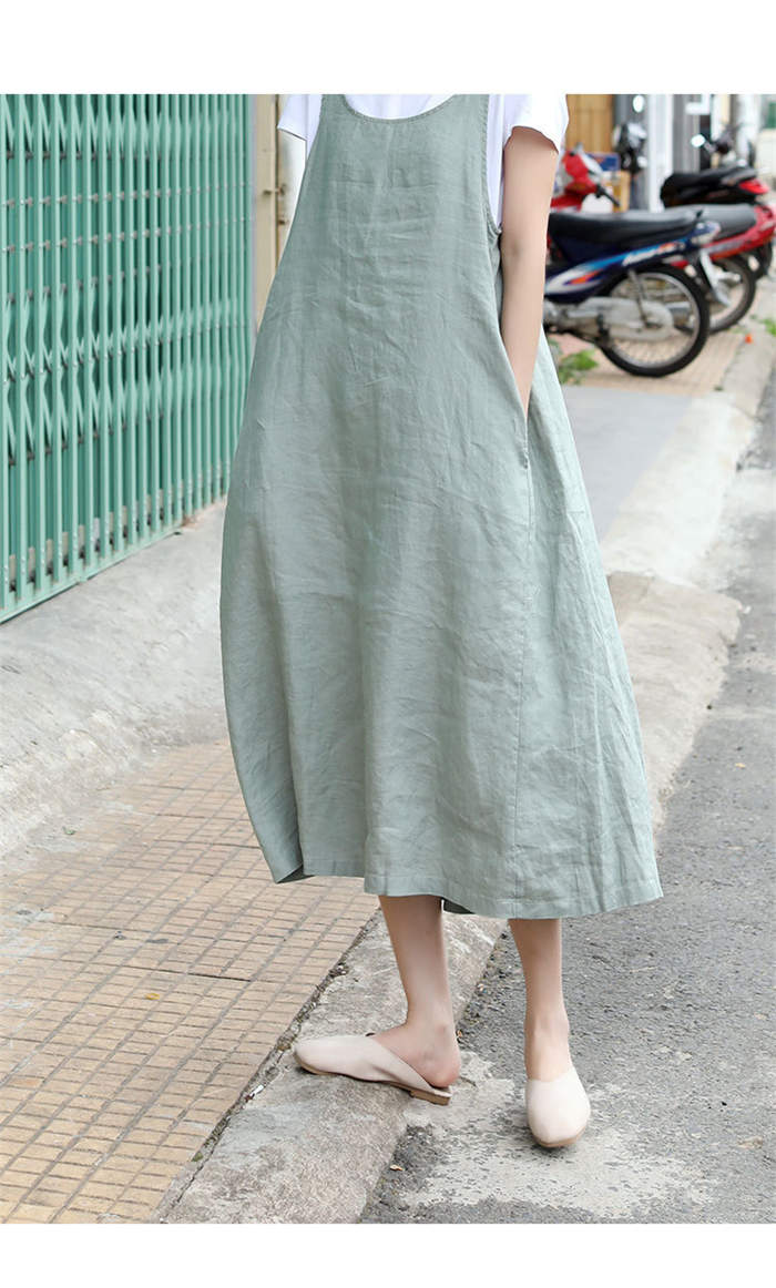 サロペット スカート 綿麻 きれいめ