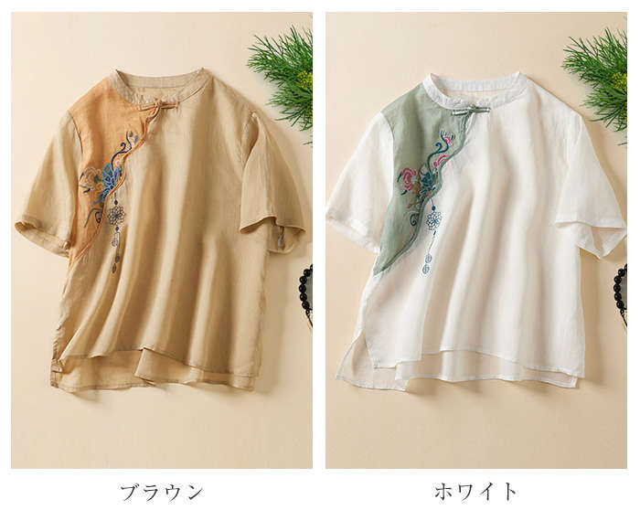ブラウスシャツ レディース 綿麻風 プ