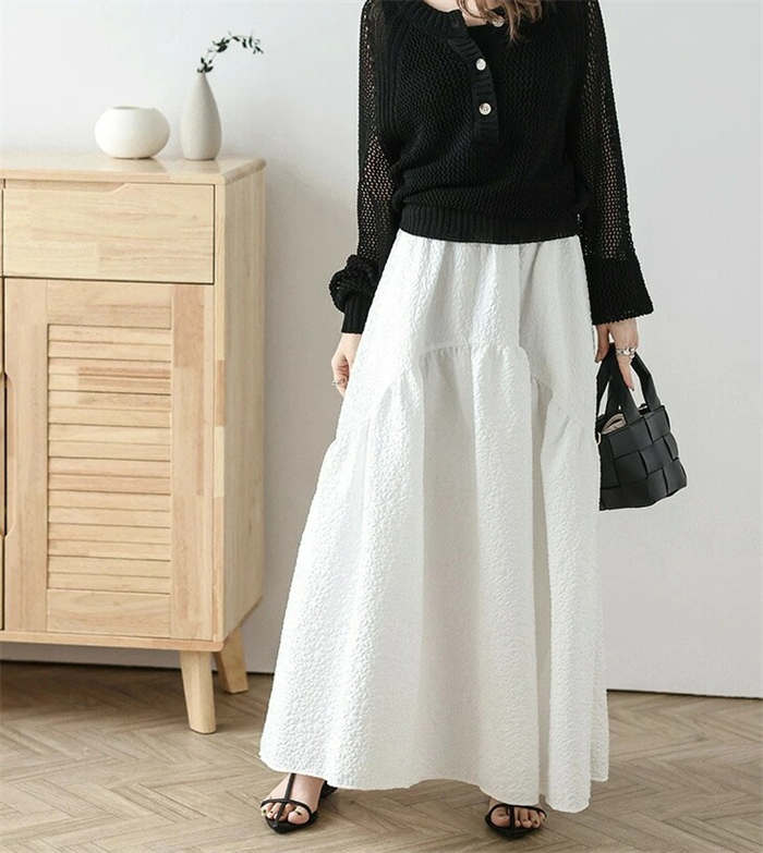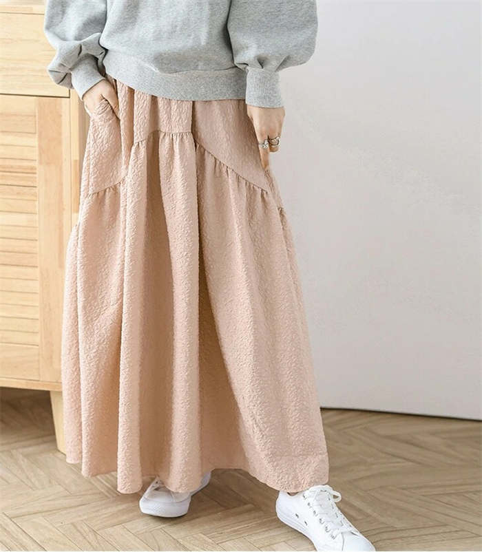 5カラー選べ 立体生地 マキシスカート
