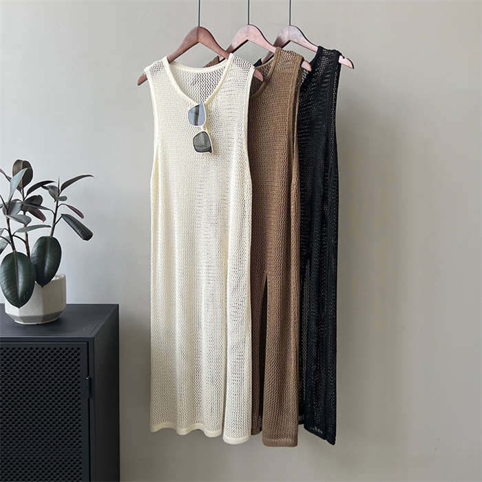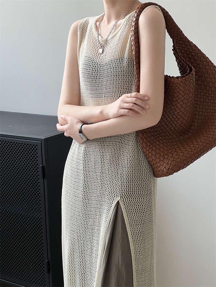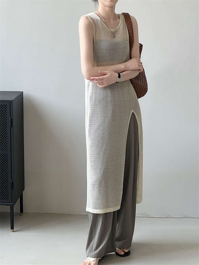 レイヤードコーデ 高品質 透かし編みベ