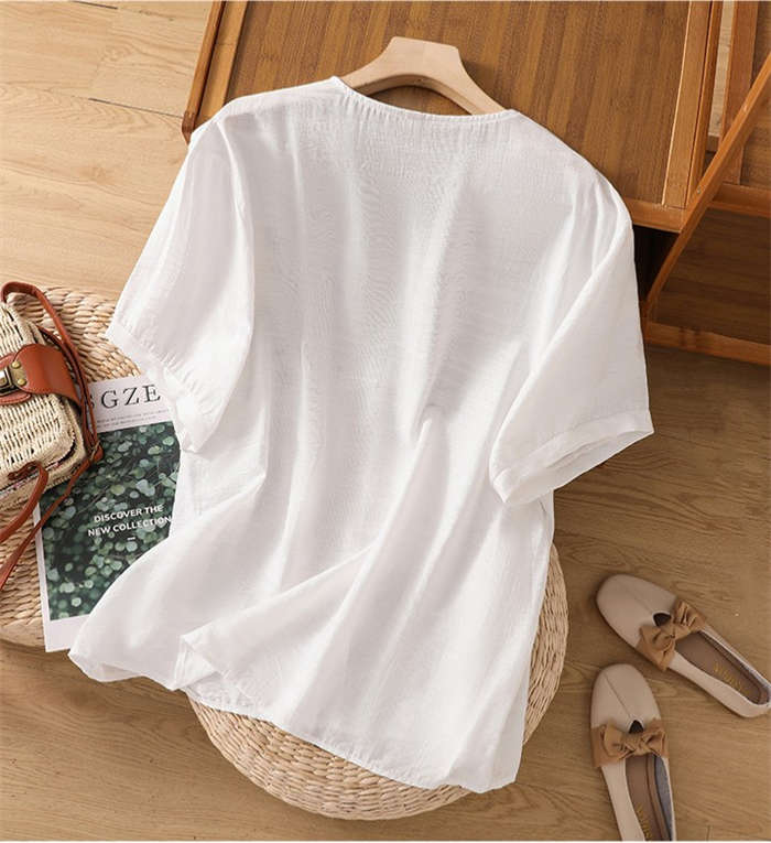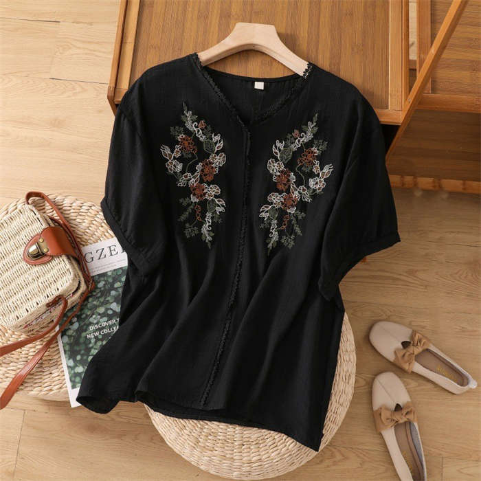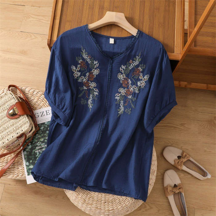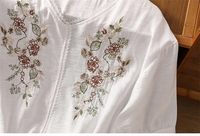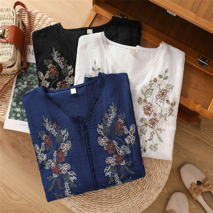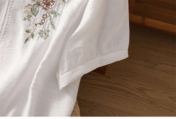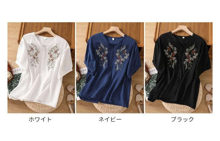 シャツ 綿麻 上品 花柄 刺繍 tシャ
