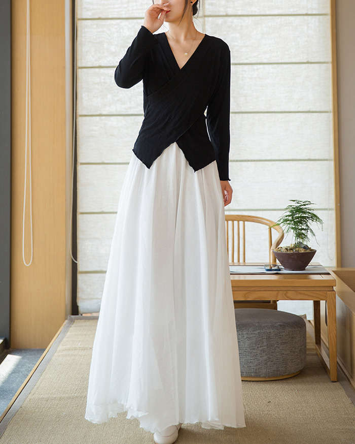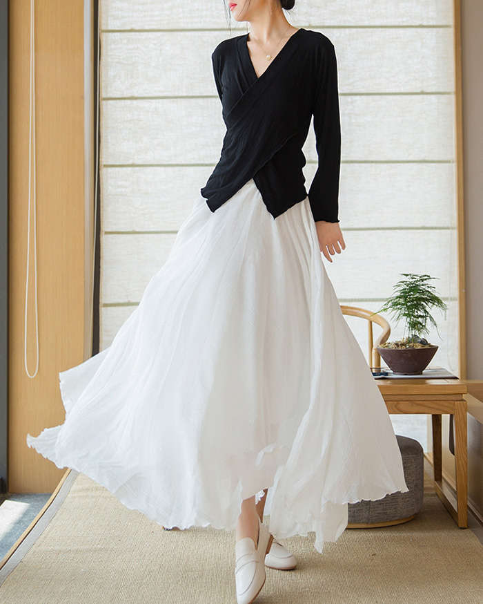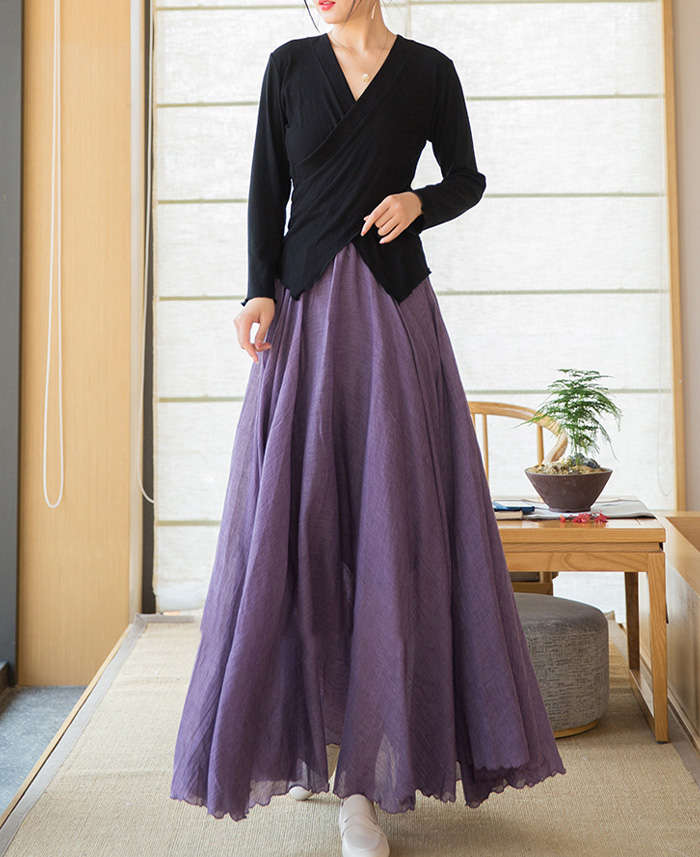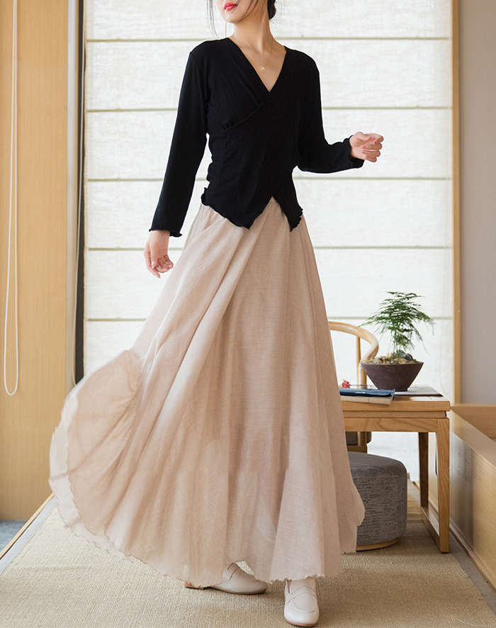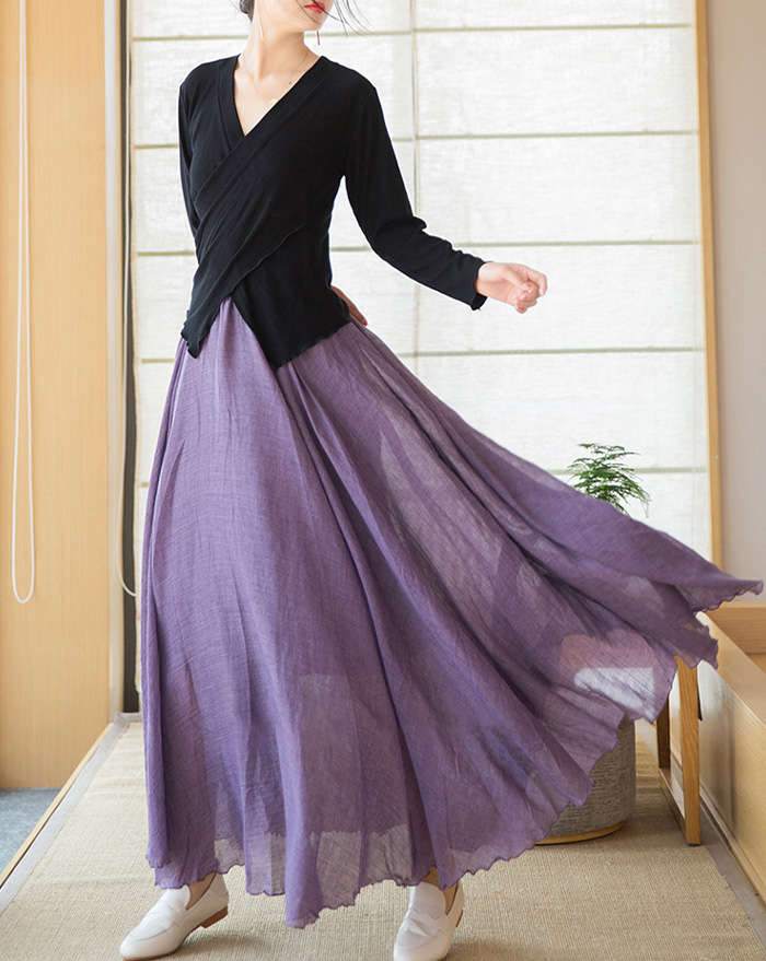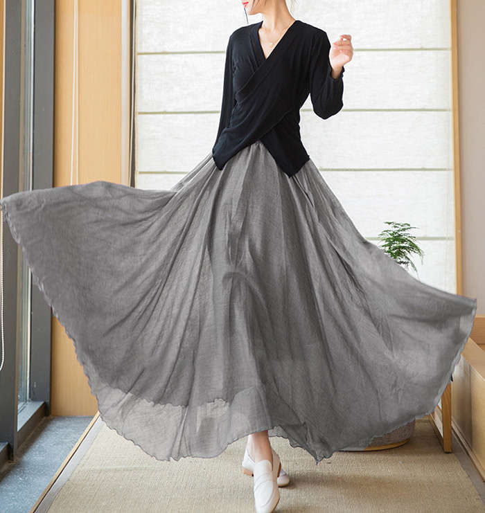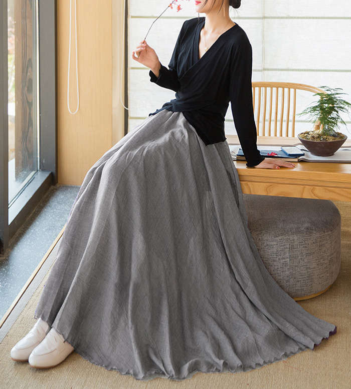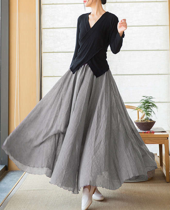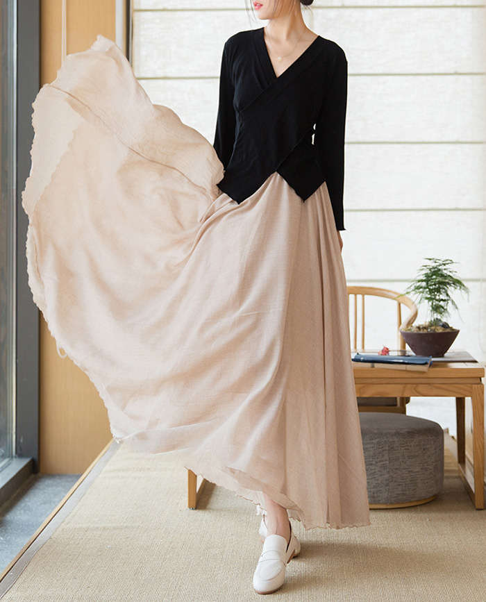 リネン風マキシフレアスカート動く度にエ