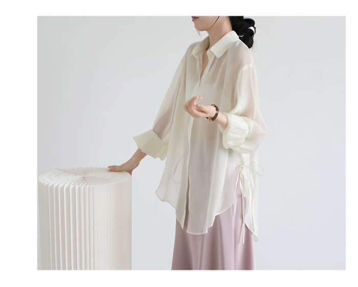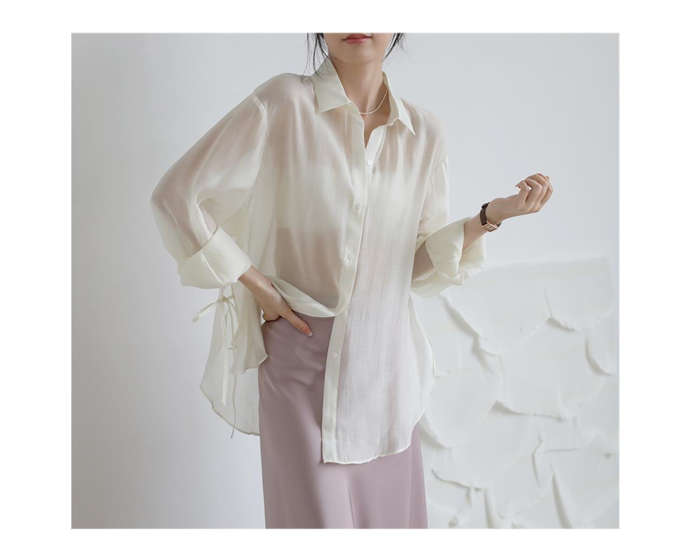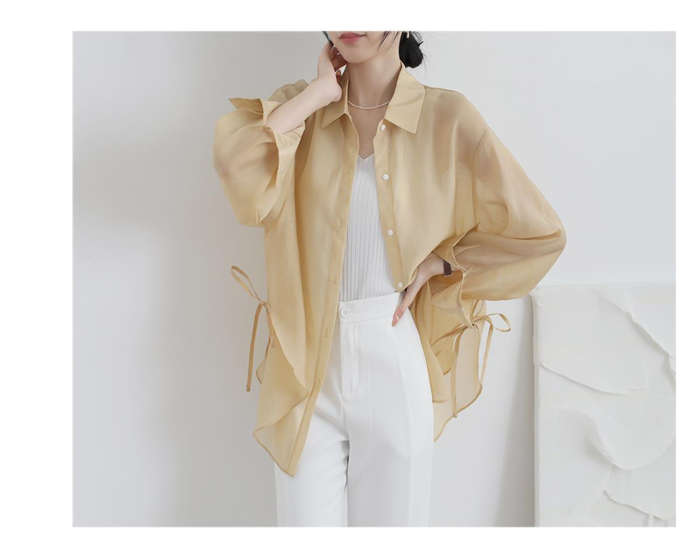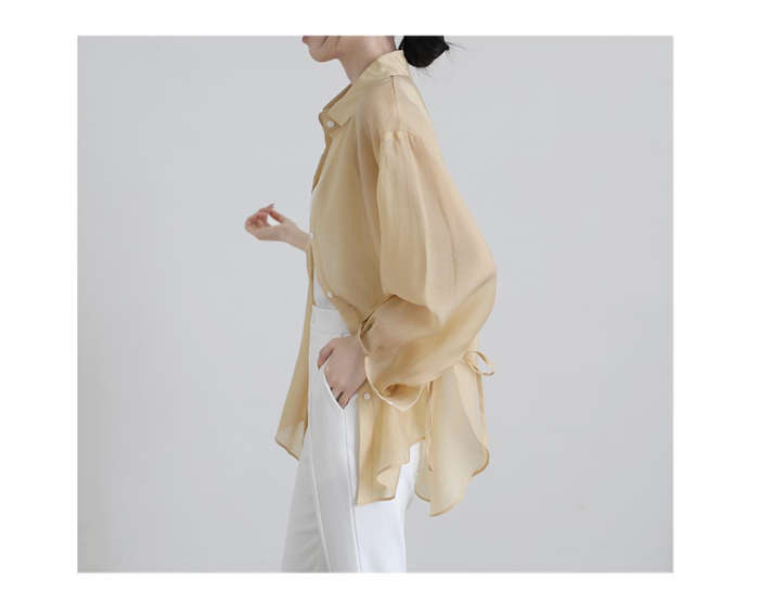 シアースリーブ ドッキングシャツ ボウタイシャツブラウス