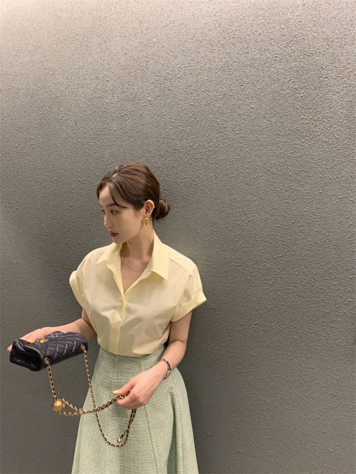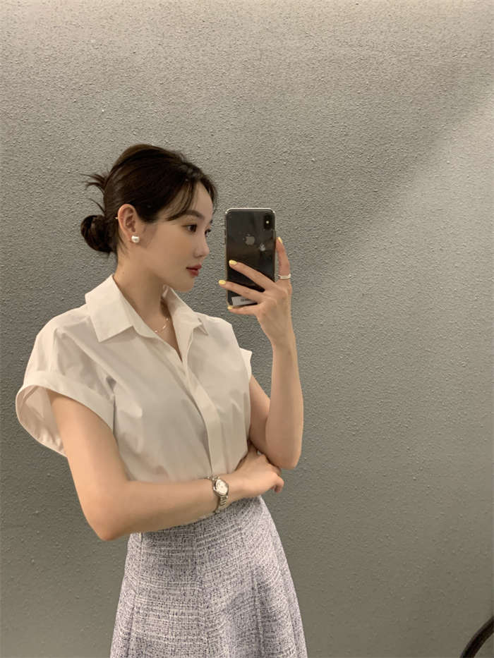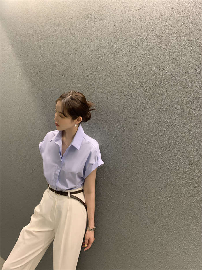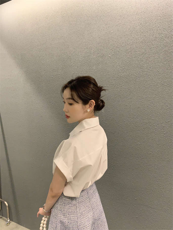 シャツ レディース 半袖 折り襟 白