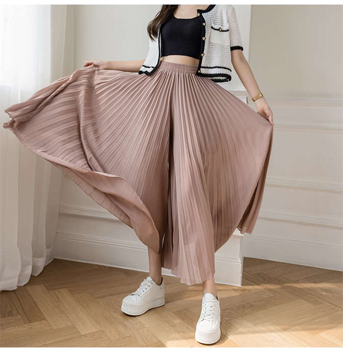 上品に広がるワイドシルエットプリーツパ