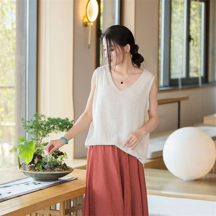 綿麻タンクトップ レディース ノースリ