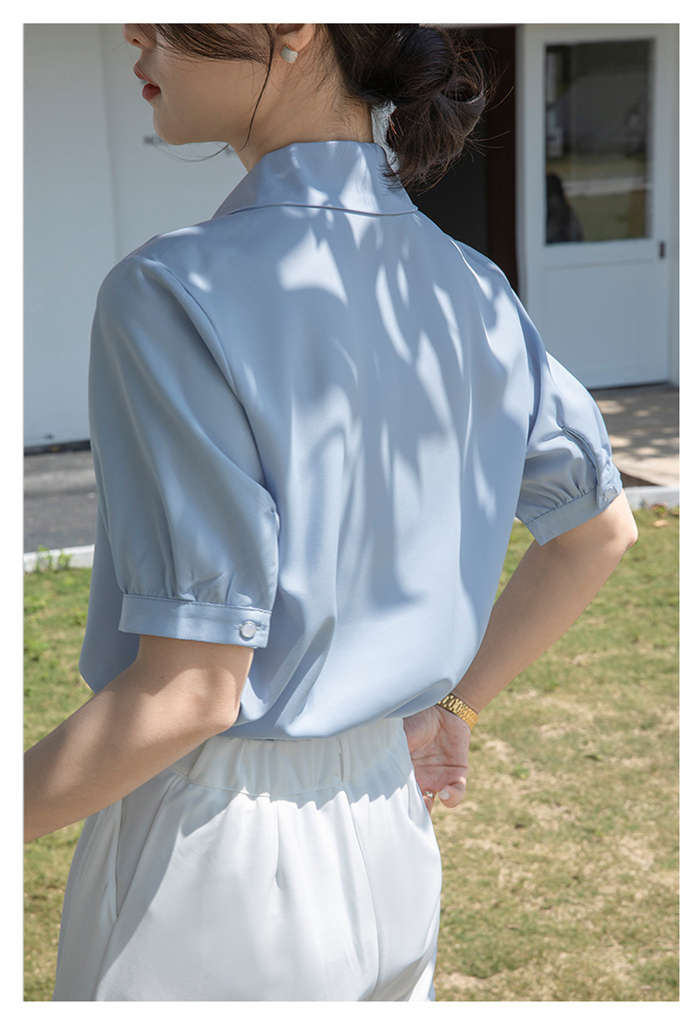 シアースリーブ ドッキングシャツ ボウタイシャツブラウス