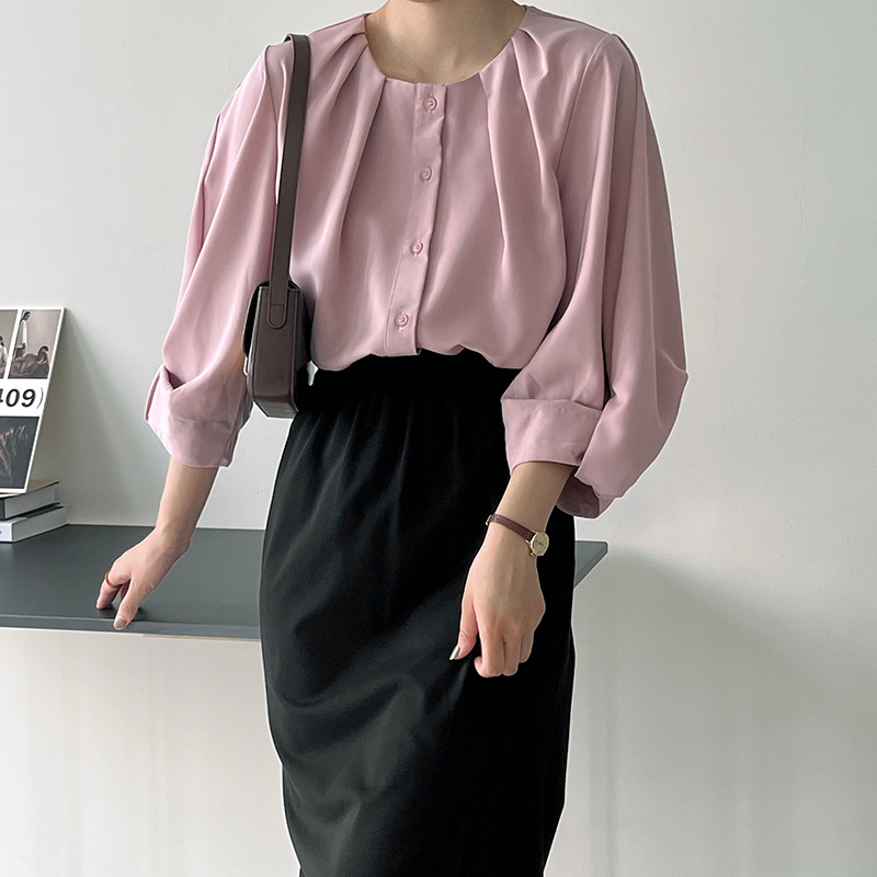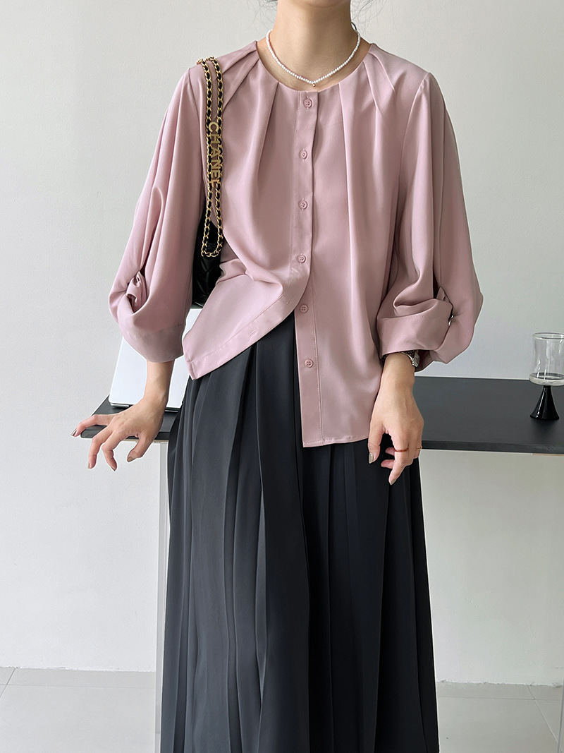 シアースリーブ ドッキングシャツ ボウタイシャツブラウス