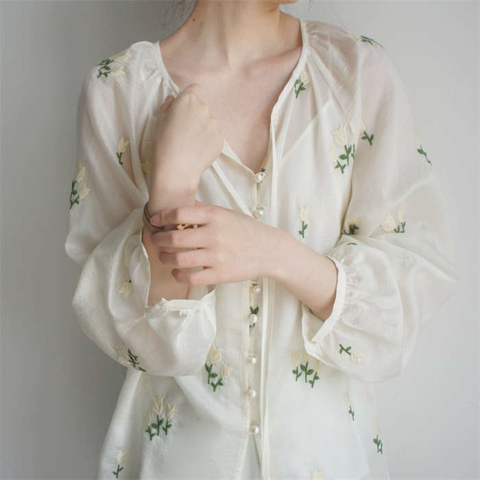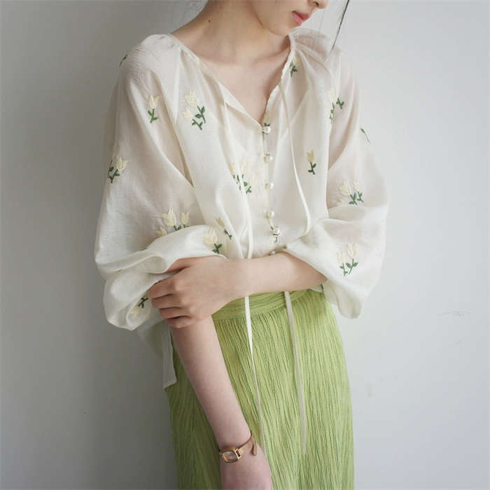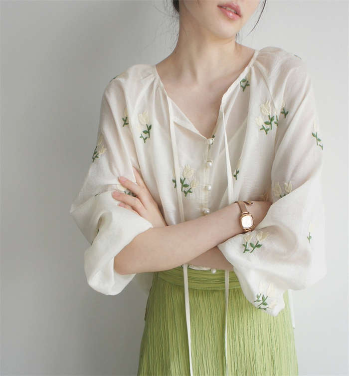 シフォンブラウス シアーブラウス ボリューム袖