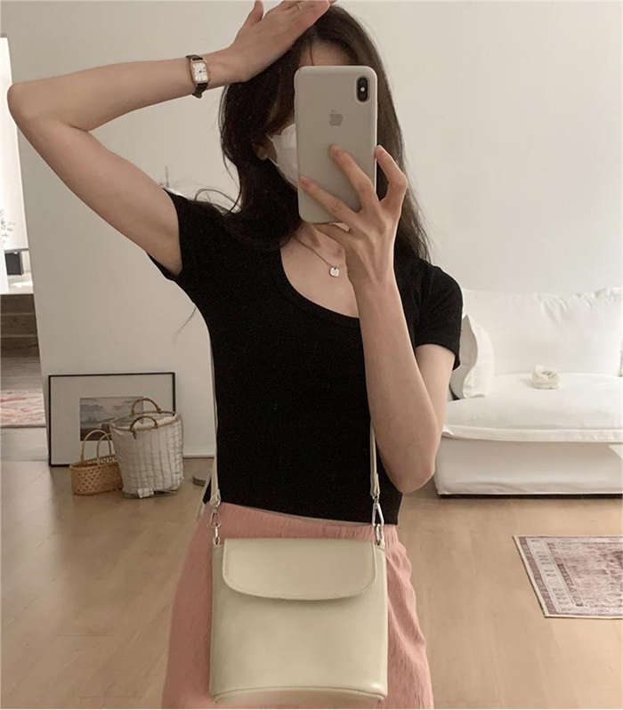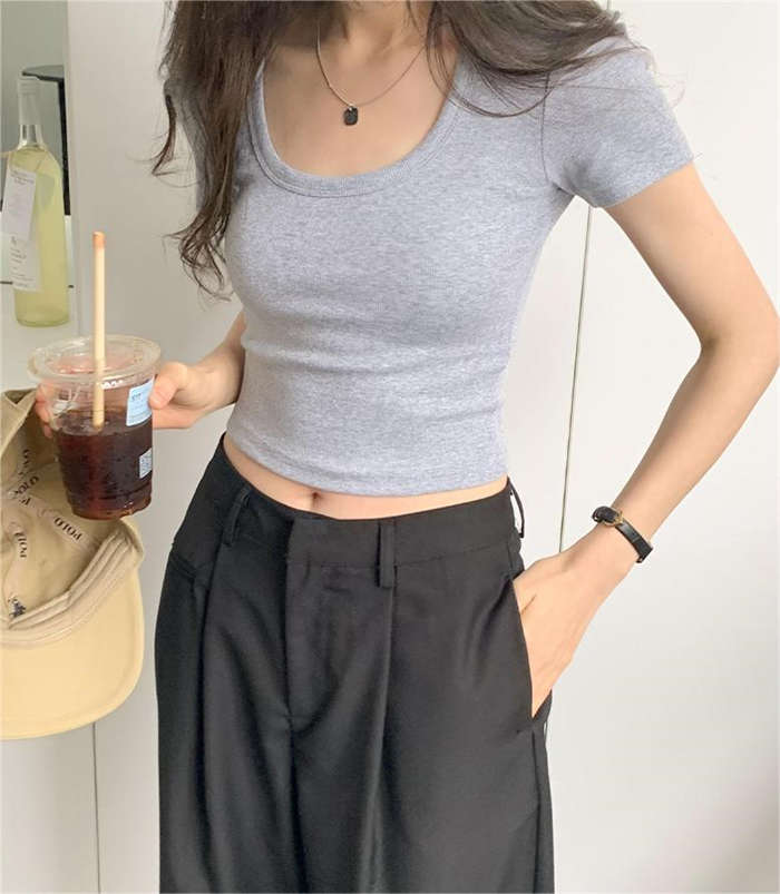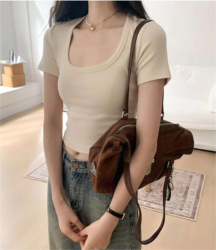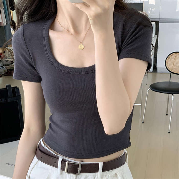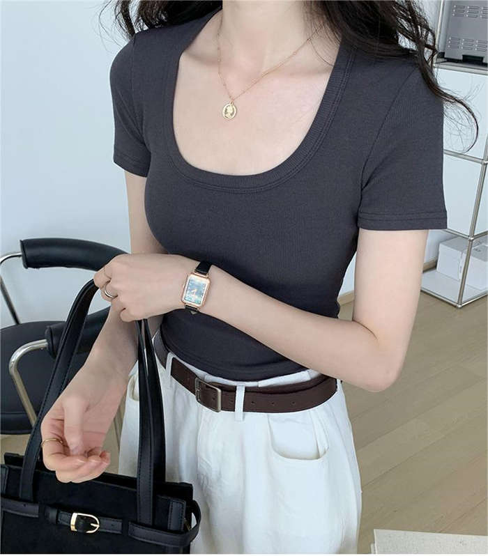 Tシャツタイトフィットストレッチ胸元が