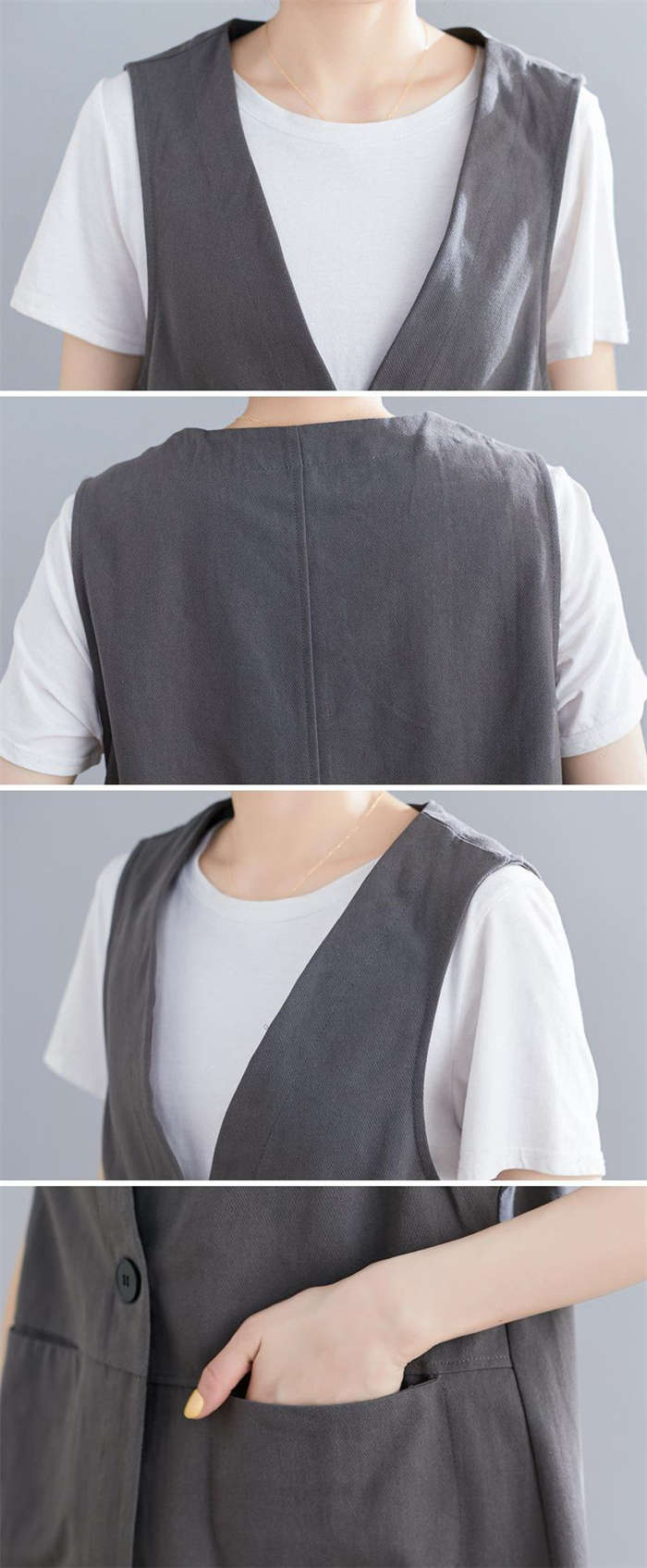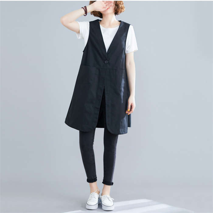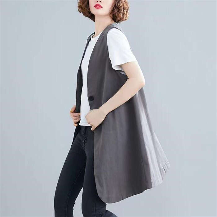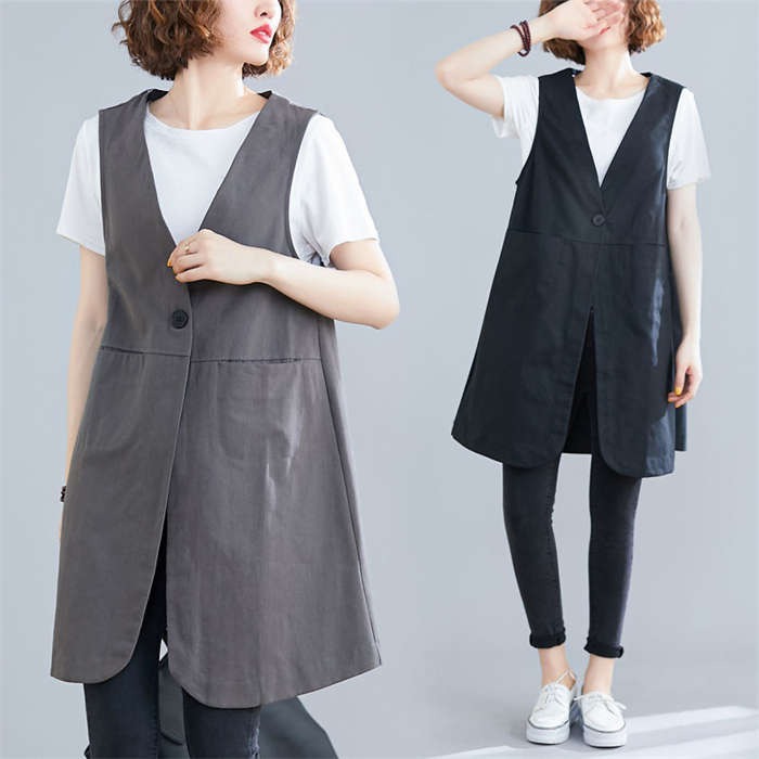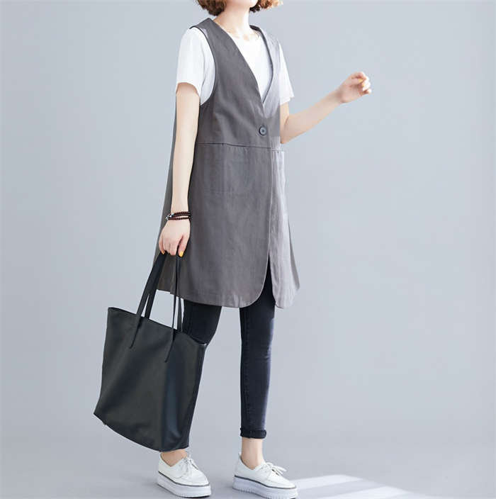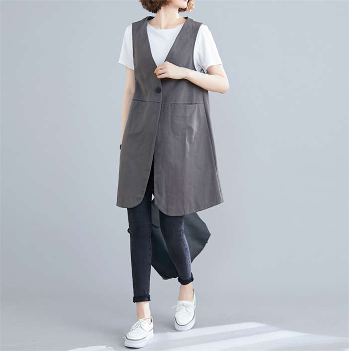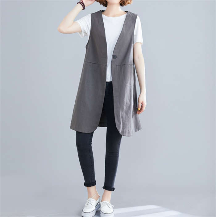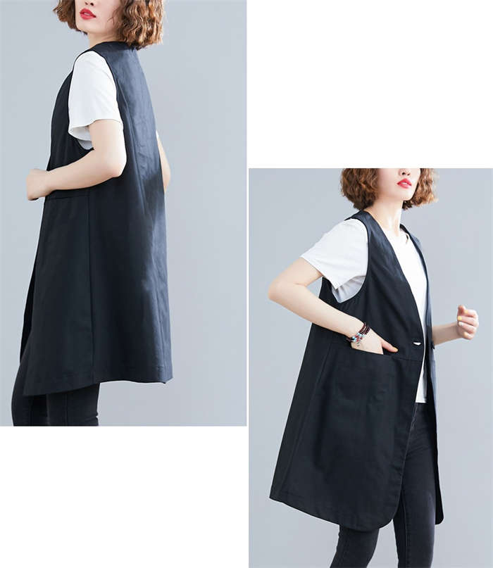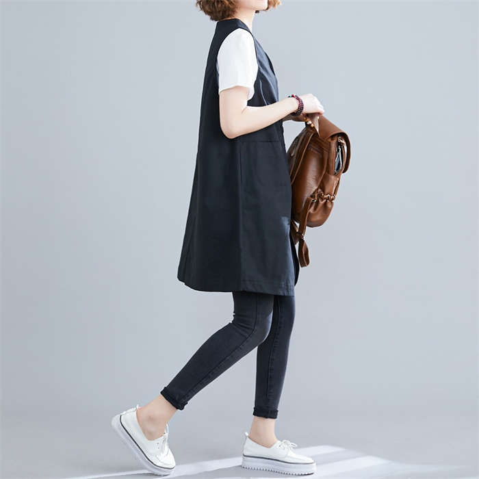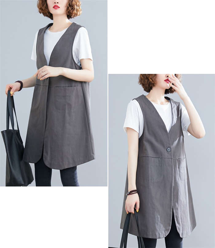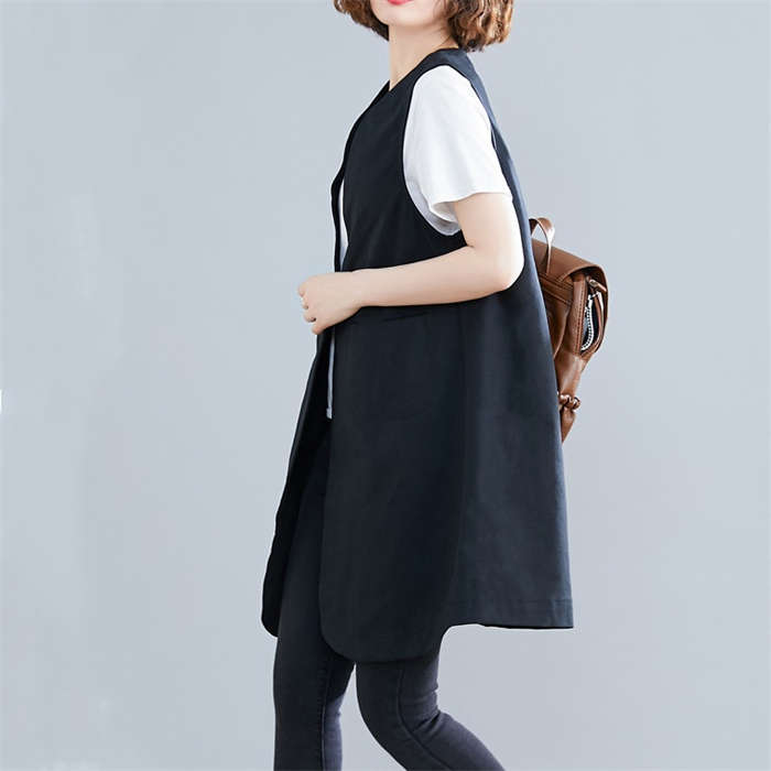 着瘦せ~ 綿麻風 トレンチベスト 春夏