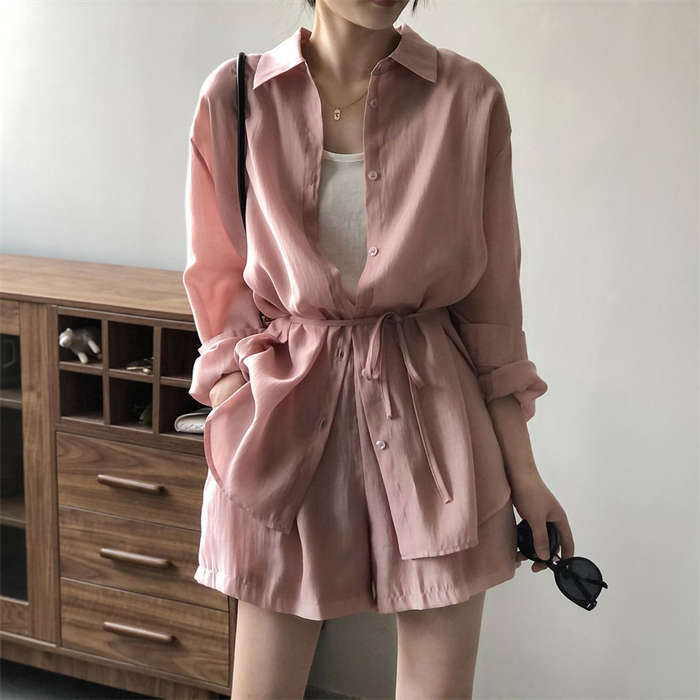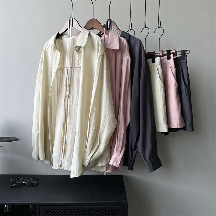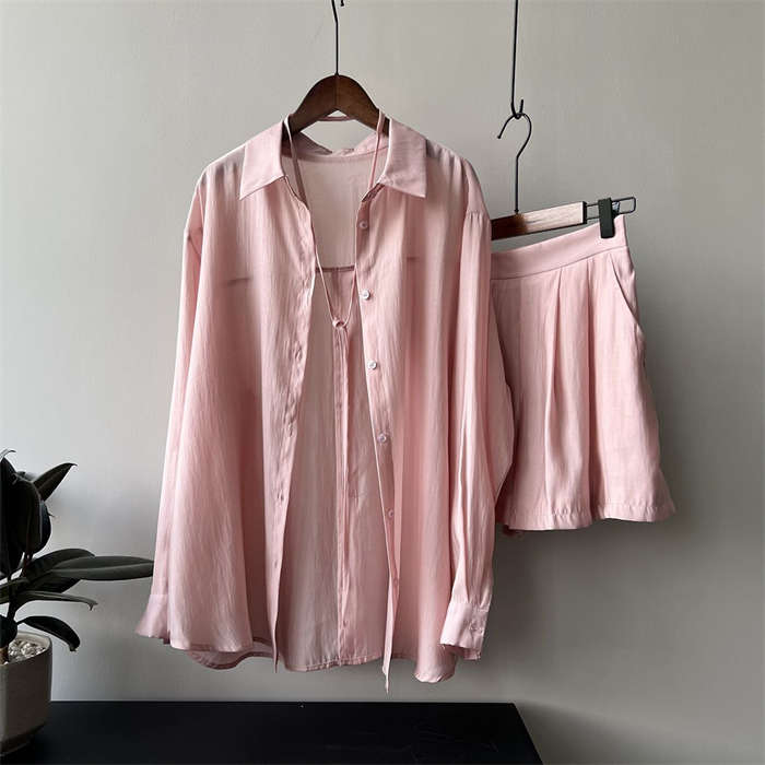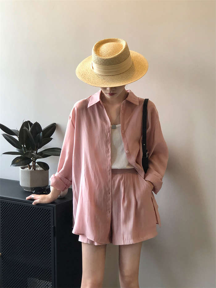 シアーシャツ × ショートパンツ 上下