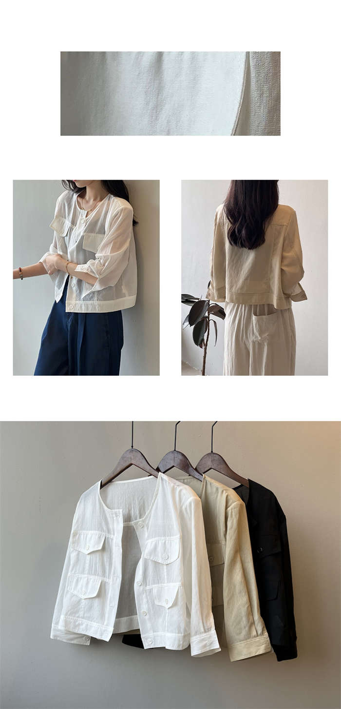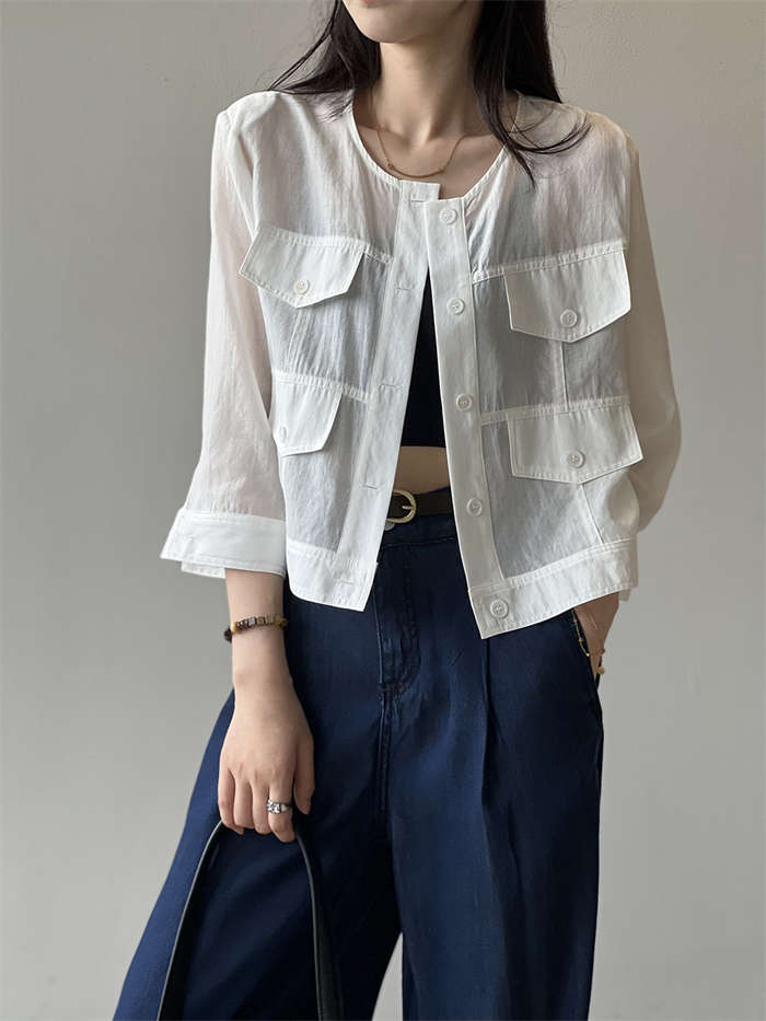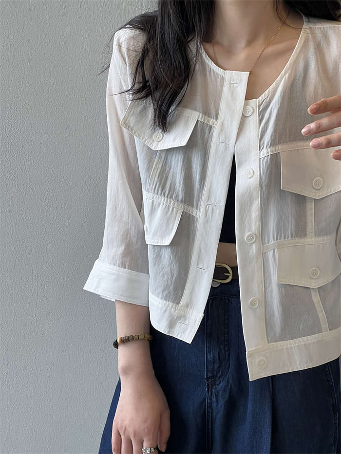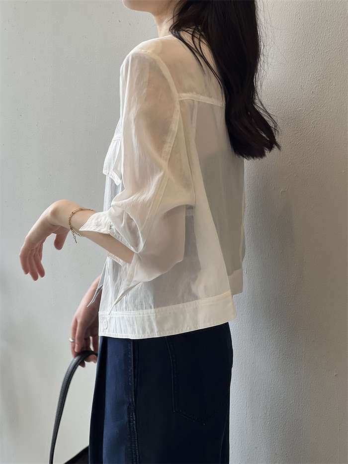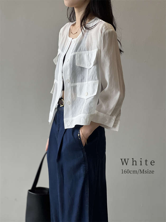 絶妙な透け感 ノーカラー シアージャケ
