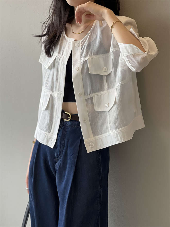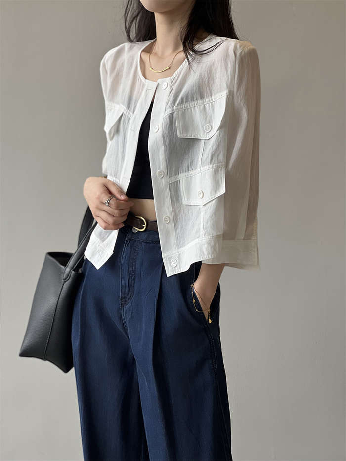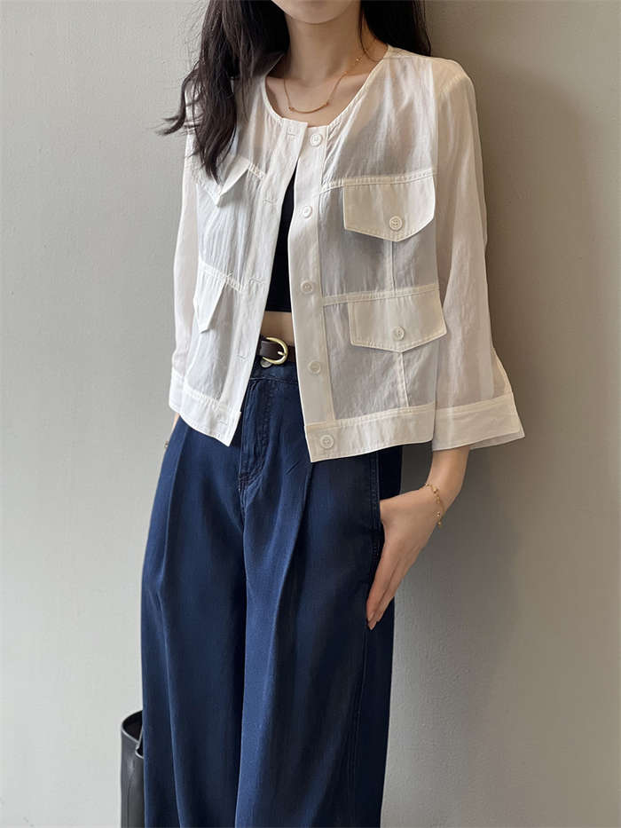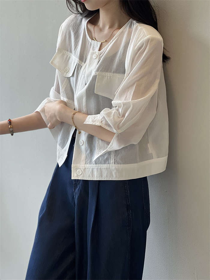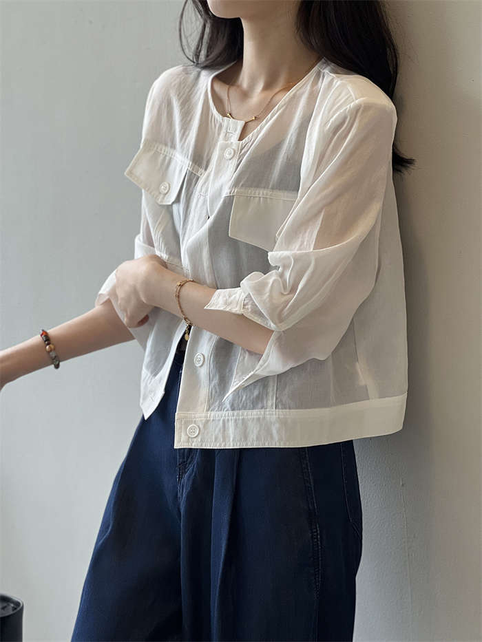 絶妙な透け感 ノーカラー シアージャケ