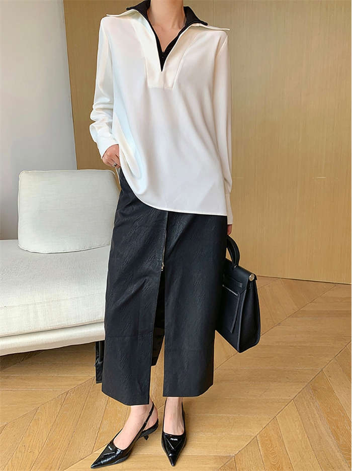 シアースリーブ ドッキングシャツ ボウタイシャツブラウス