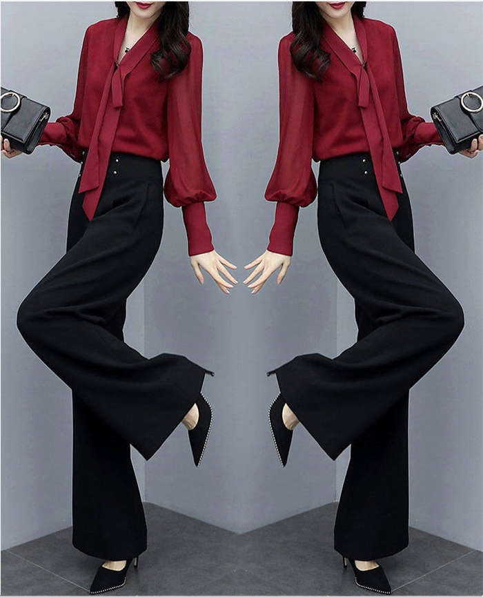 シアースリーブ ドッキングシャツ ボウタイシャツブラウス