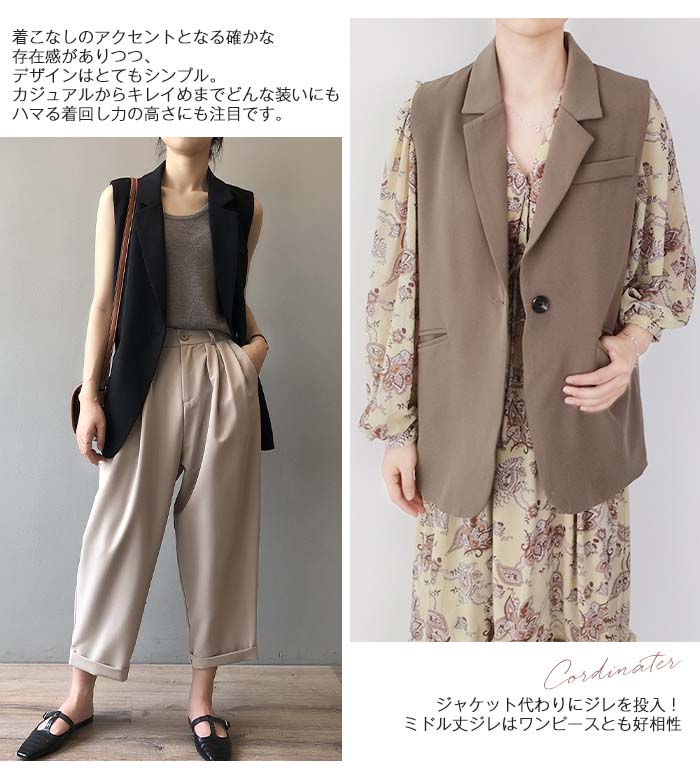 ジレ レディース ロング 春夏 フォー
