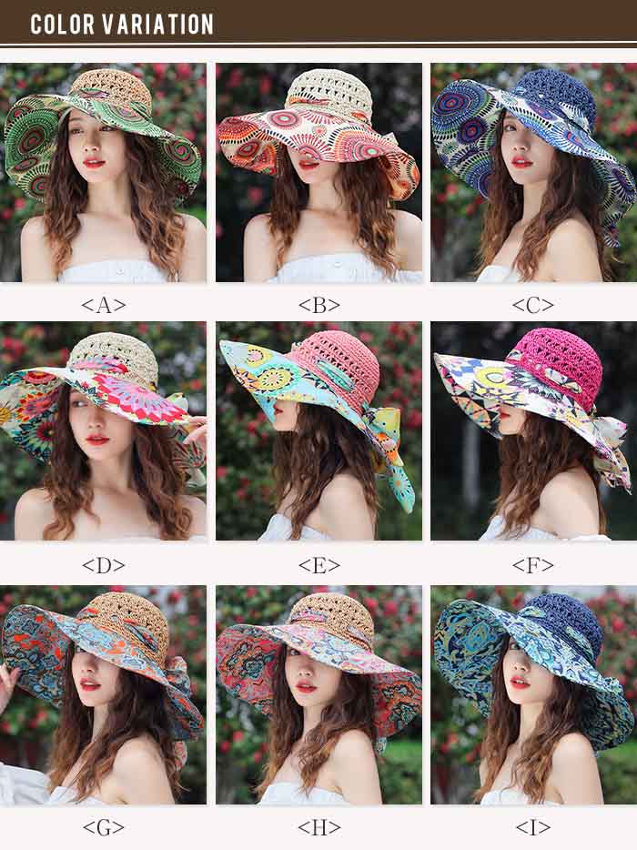 帽子 レディース 夏 つば広 リボン