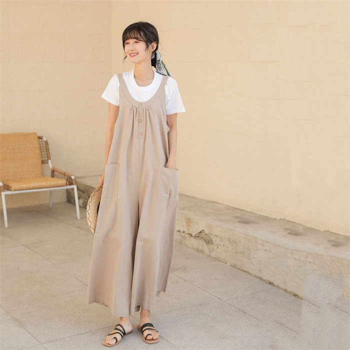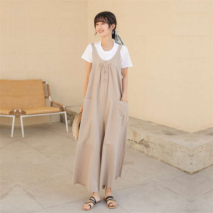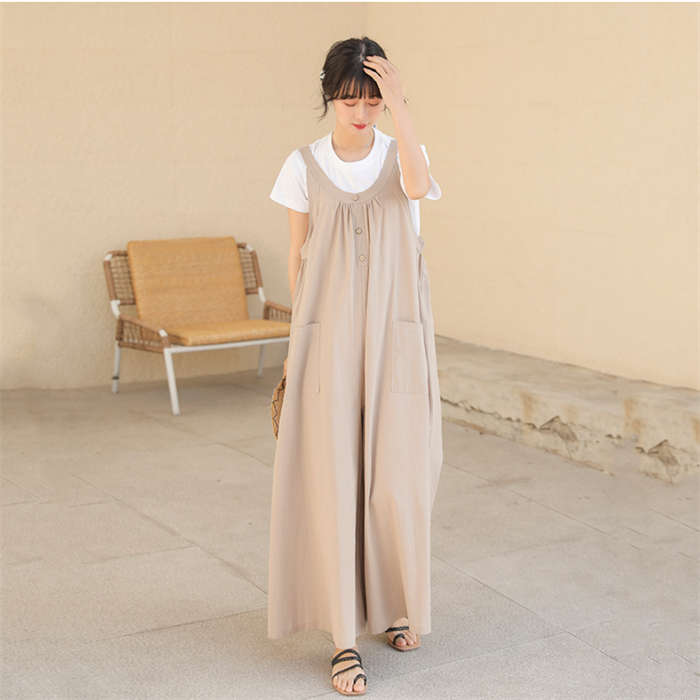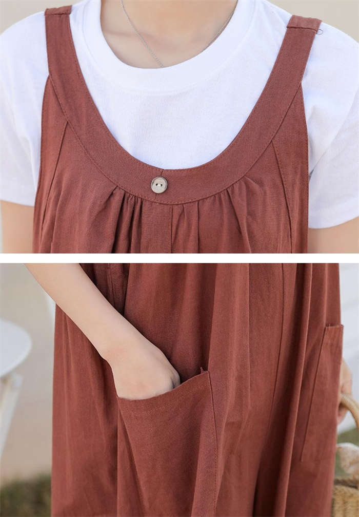 ゆるっと自然に着瘦せ 綿麻素材 サロペ