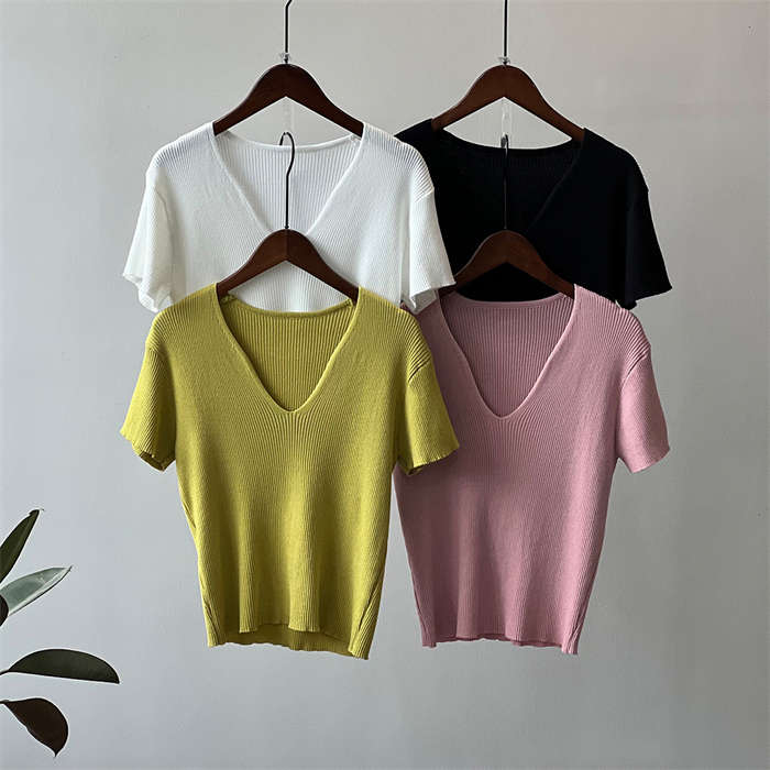 着回し力抜群な半袖ニットは、顔周りがス
