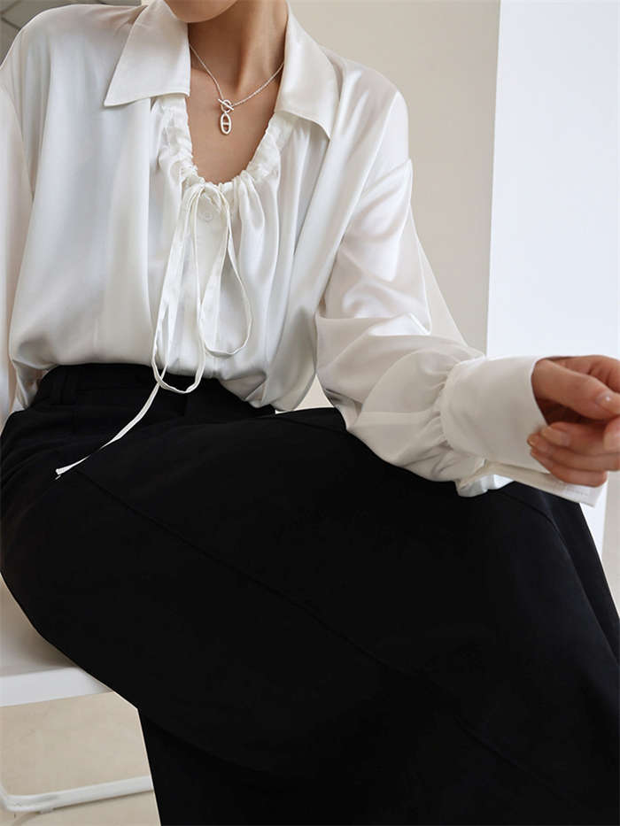 シアースリーブ ドッキングシャツ ボウタイシャツブラウス