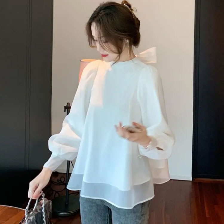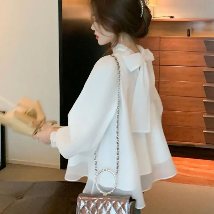 前後とも着用可能 シャツブラウス ボウ