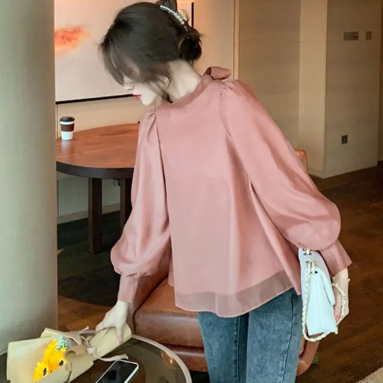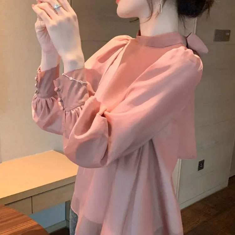 シフォンブラウス シアーブラウス ボリューム袖