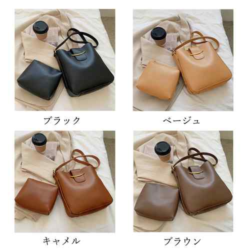 おしゃれ ポーチ付 バケツバッグ 縦型