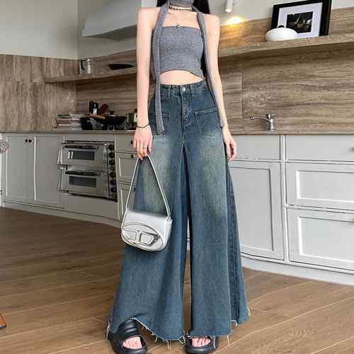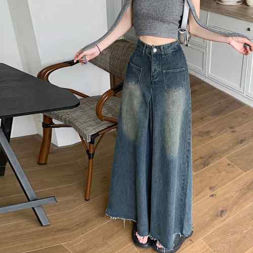 ウォッシュ加工ジーンズ カットオフバギ