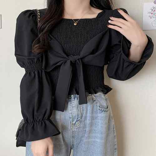シアースリーブ ドッキングシャツ ボウタイシャツブラウス