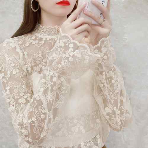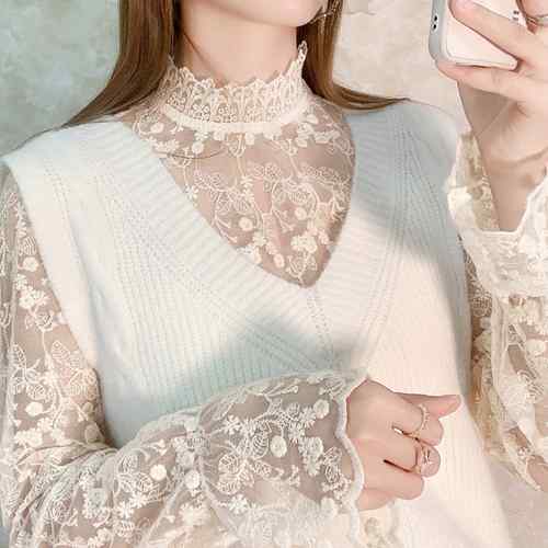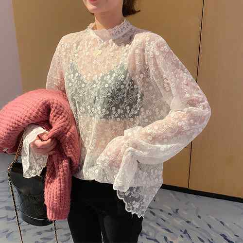 レースブラウス 長袖 レディース プチ