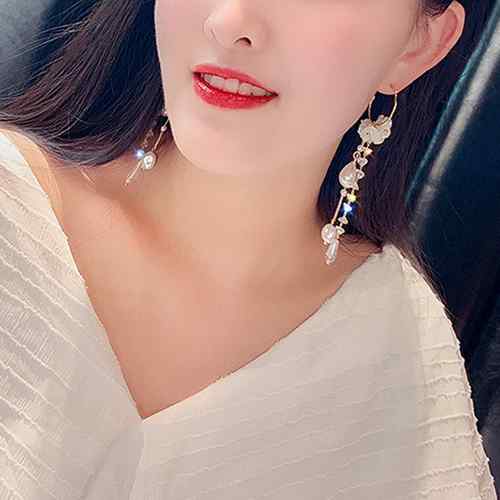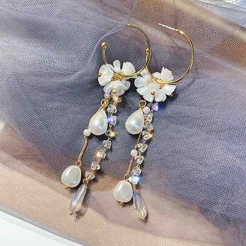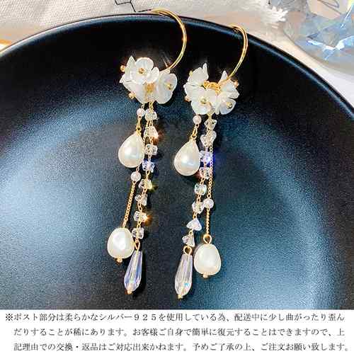 パール ロングピアス フープ 大きめ