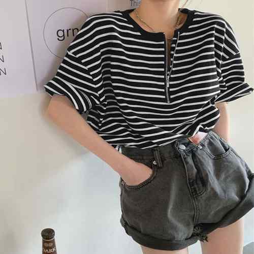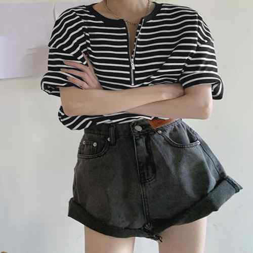 ハーフジップTシャツ 5分袖 着やせ