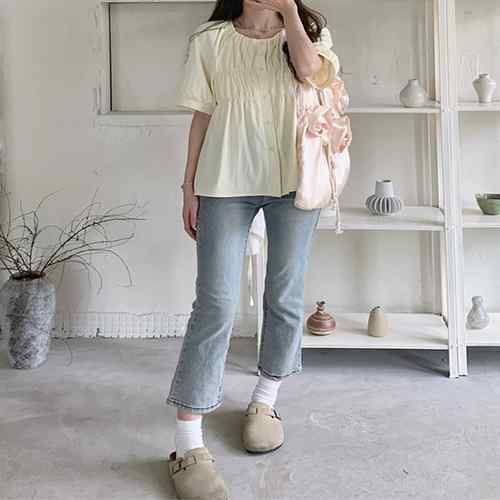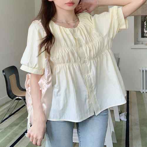 シアースリーブ ドッキングシャツ ボウタイシャツブラウス