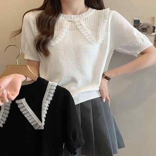 シアースリーブ ドッキングシャツ ボウタイシャツブラウス