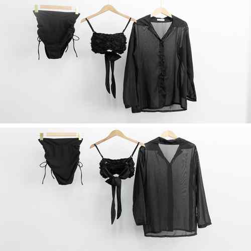 シアースリーブ ドッキングシャツ ボウタイシャツブラウス