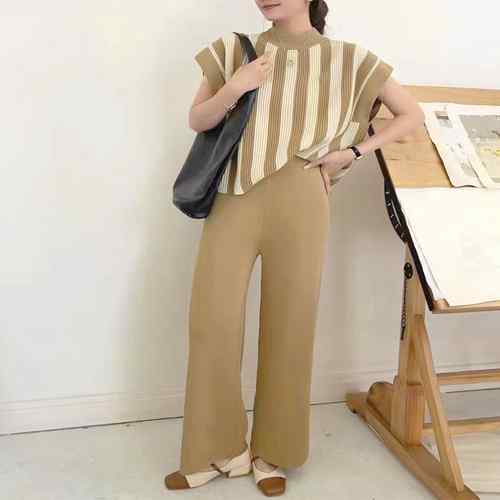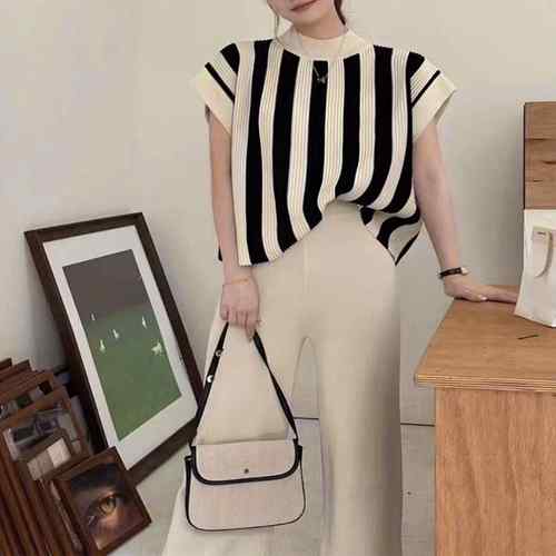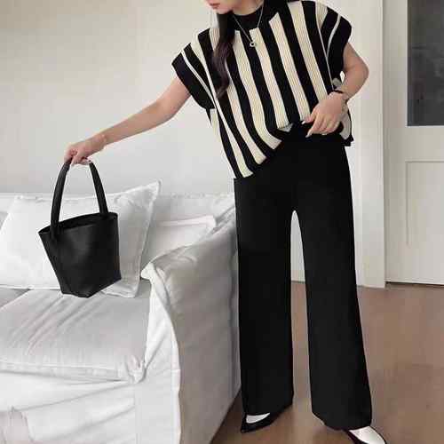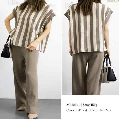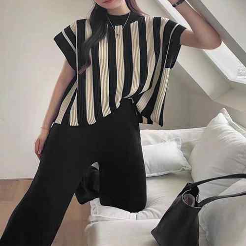 半袖ストライプニット フレンチスリーブ