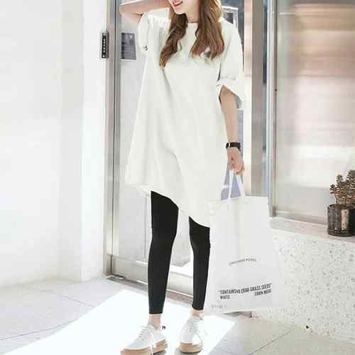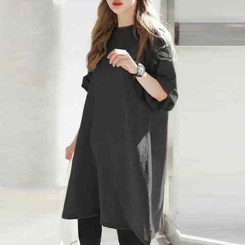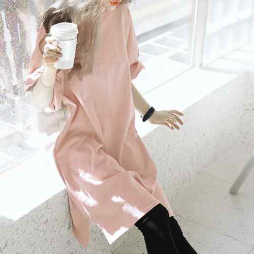 レディース 無地 ロングTシャツ ベー