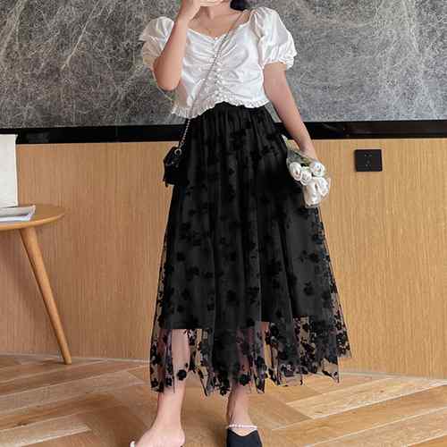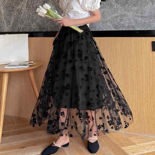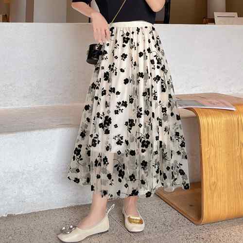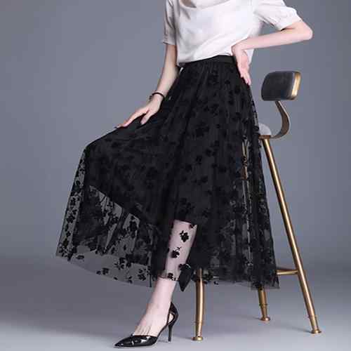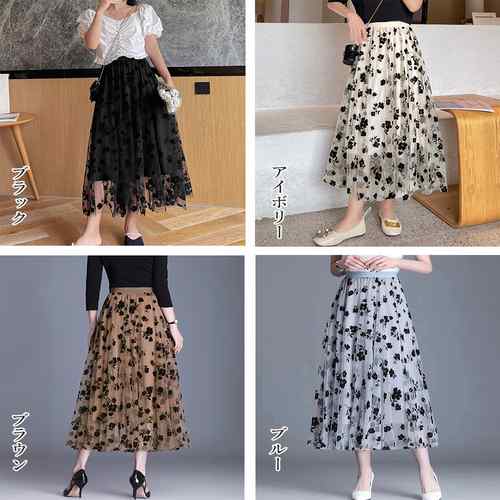裏地付き メッシュスカート レディース