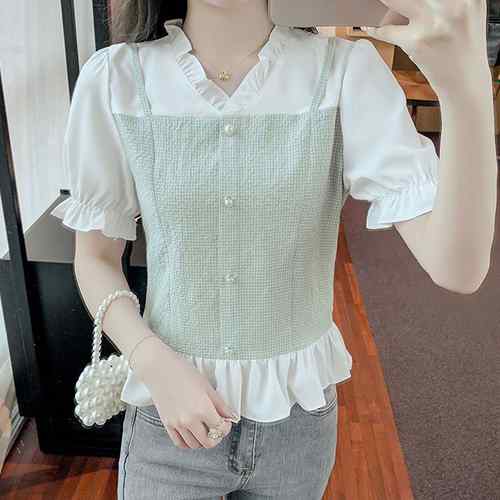 シアースリーブ ドッキングシャツ ボウタイシャツブラウス